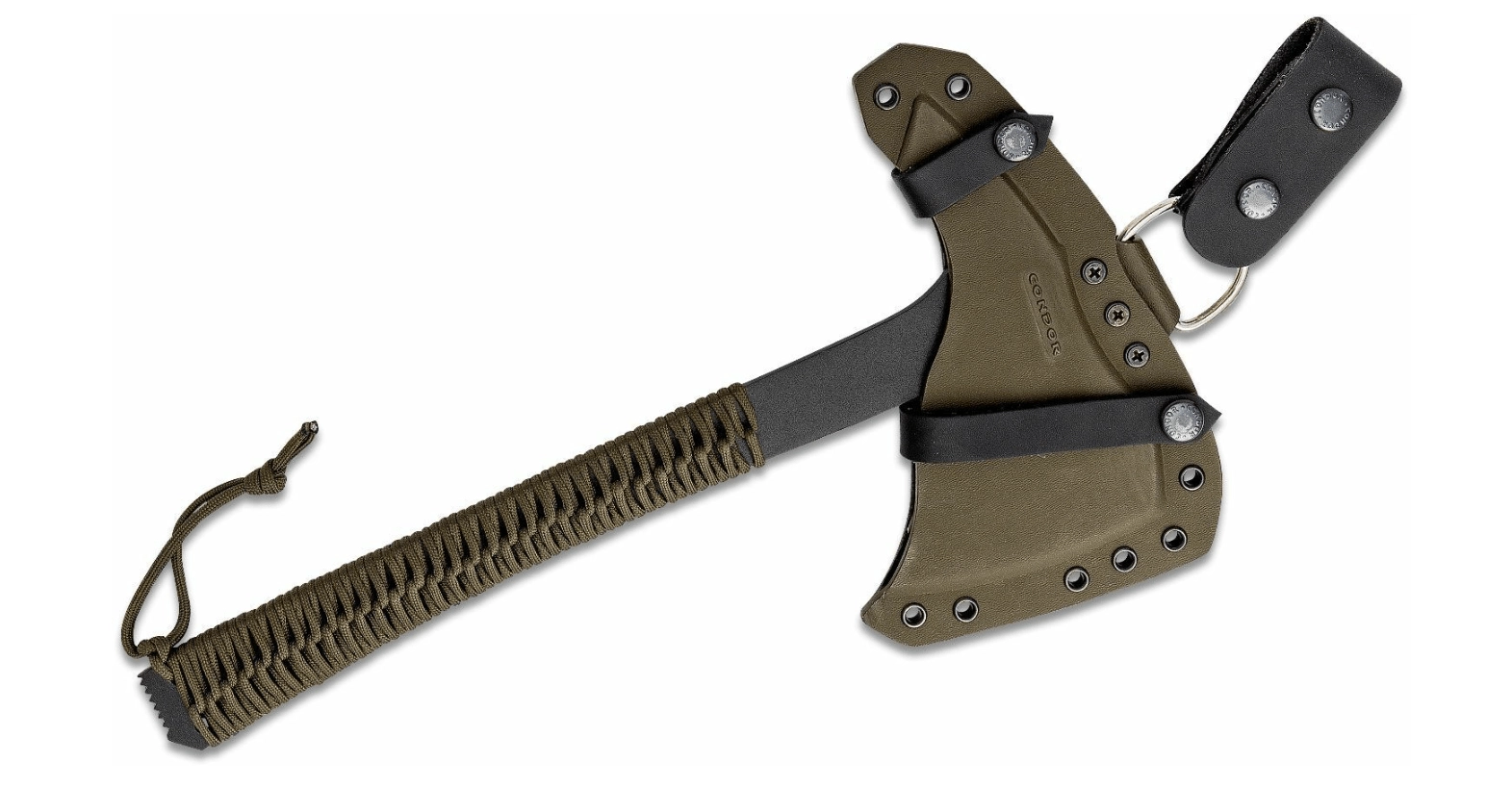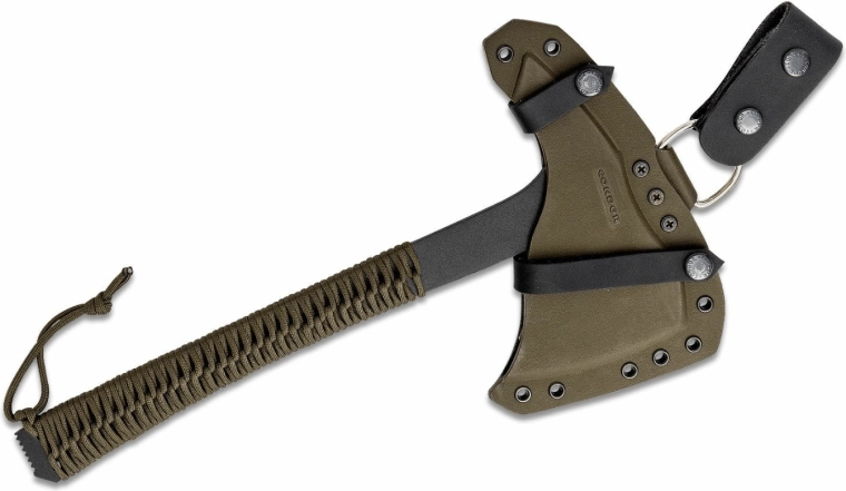 A csomagban kydex tok (710 Custom Sheaths) található, amely biztonságos és sokféle rögzítést tesz lehetővé övre, hátizsákra vagy taktikai felszerelésre. A 817 g-os, kiegyensúlyozott tömeg jó kezelhetőséget biztosít, így munkára és gyakorló dobásra egyaránt alkalmas.