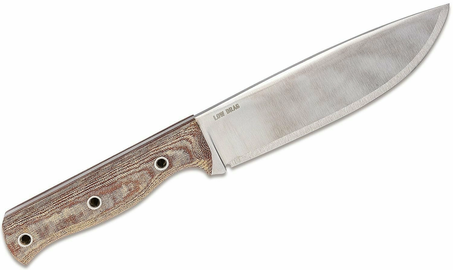 A barna Micarta markolat kifejezett textúrával és ergonomikus formával szárazon és nedvesen is biztosan kézben áll. A 1075-ös acél rugalmas szénacél – a hosszú élettartam érdekében munka után elég a pengét megtisztítani és enyhén beolajozni.