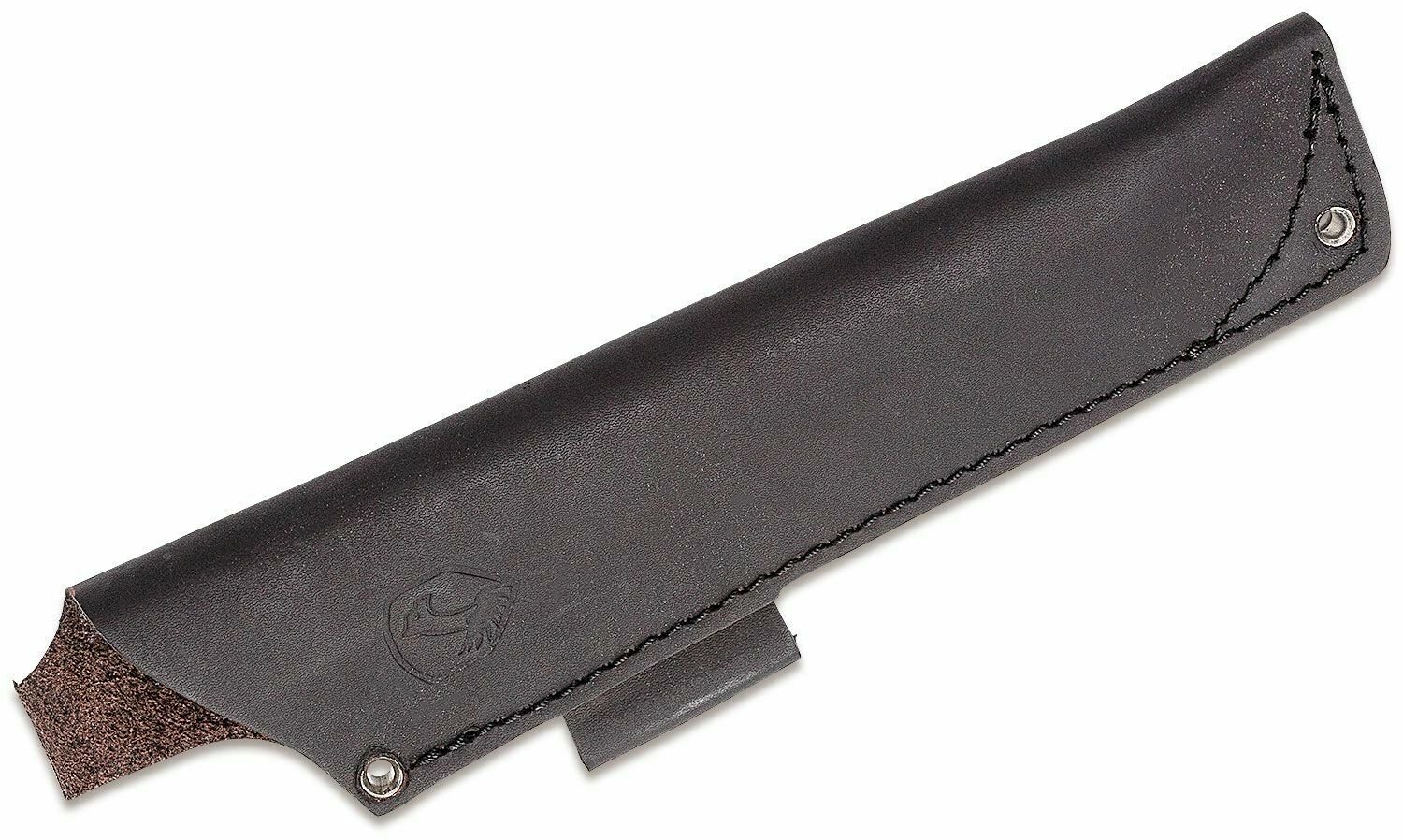 A tartós, varrott bőr tok védi a pengét, és kényelmes övre fűzést biztosít a gyors hozzáférés érdekében terepen.