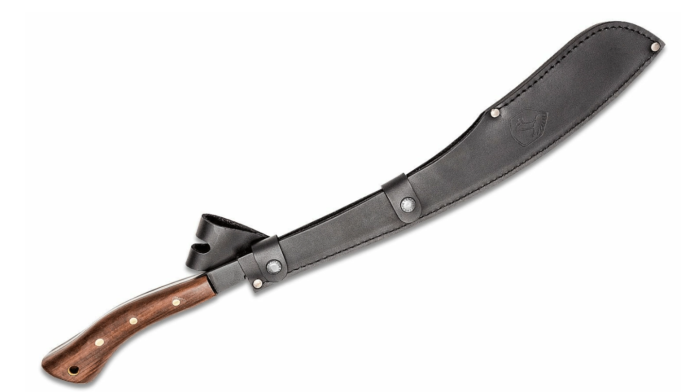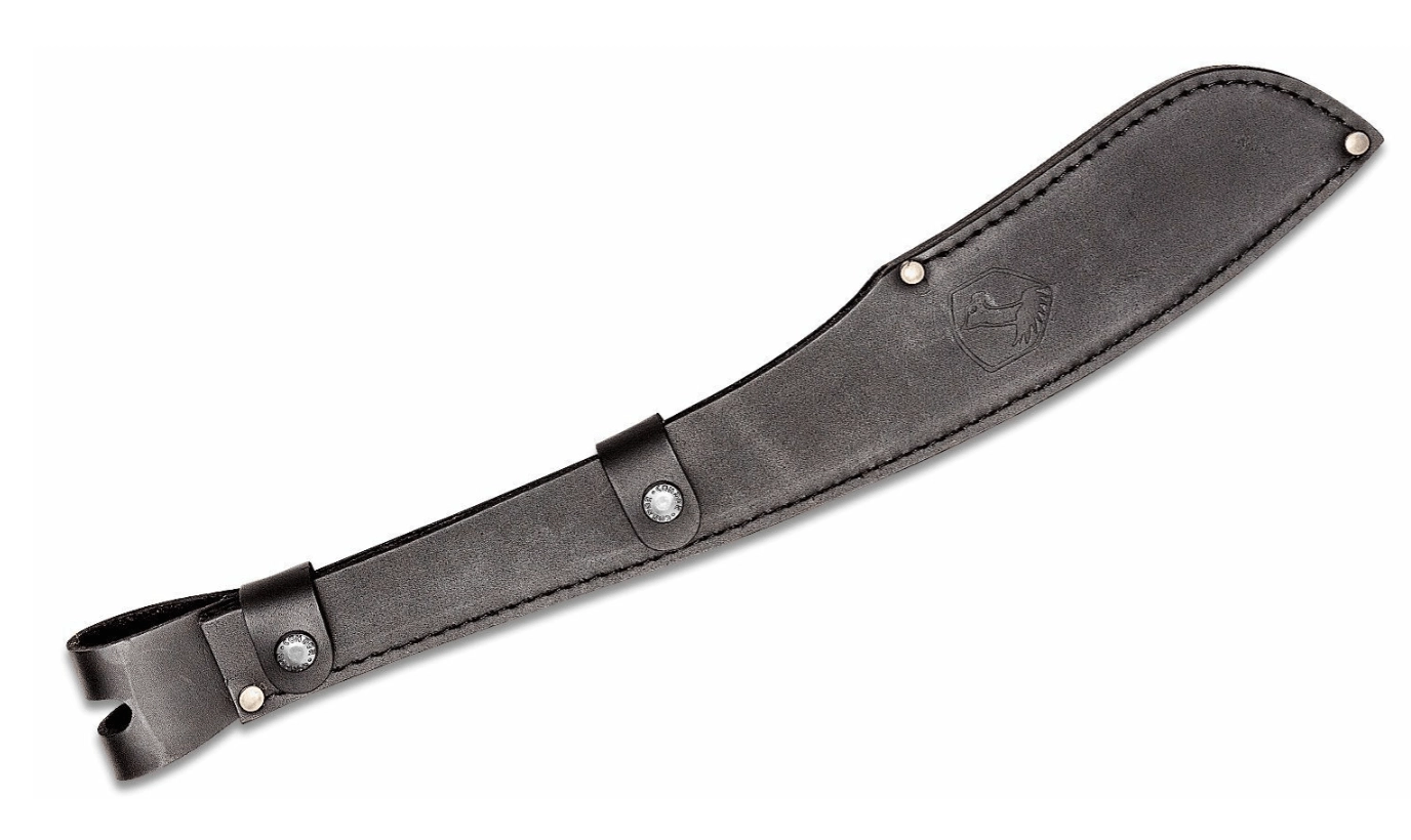 A masszív bőrtok övbújtatóval védi a pengét és a felhasználót, és lehetővé teszi, hogy a machete mindig kéznél legyen.