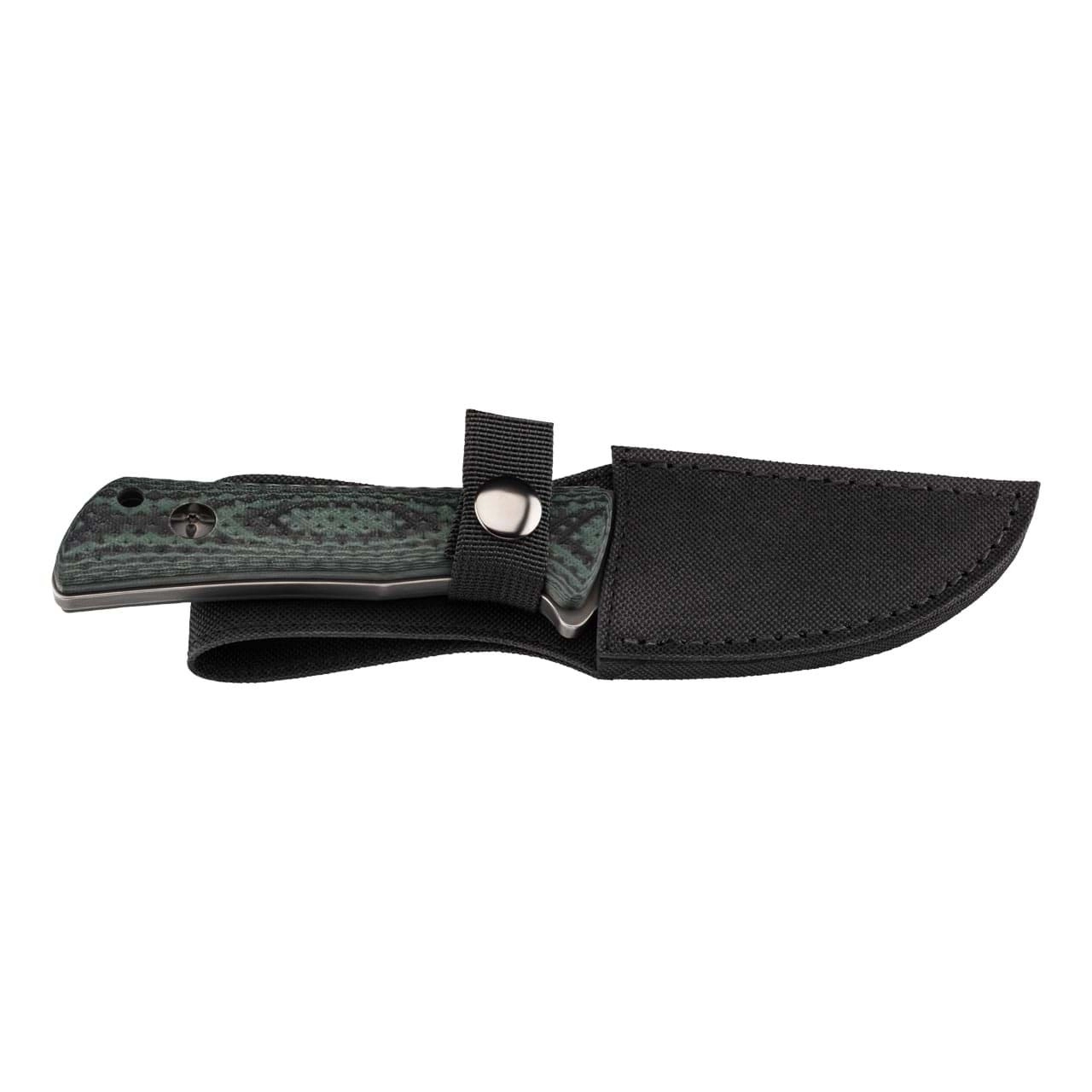 Kompakt és tartós öv kés outdoorhoz, túrázáshoz és vadászathoz. Masszív full-tang penge AISI 420 rozsdamentes acélból, Blackwash felületkezeléssel, ergonomikus G10 markolat fokozott tapadással, valamint nylon tok övbújtatóval a biztonságos viseléshez.