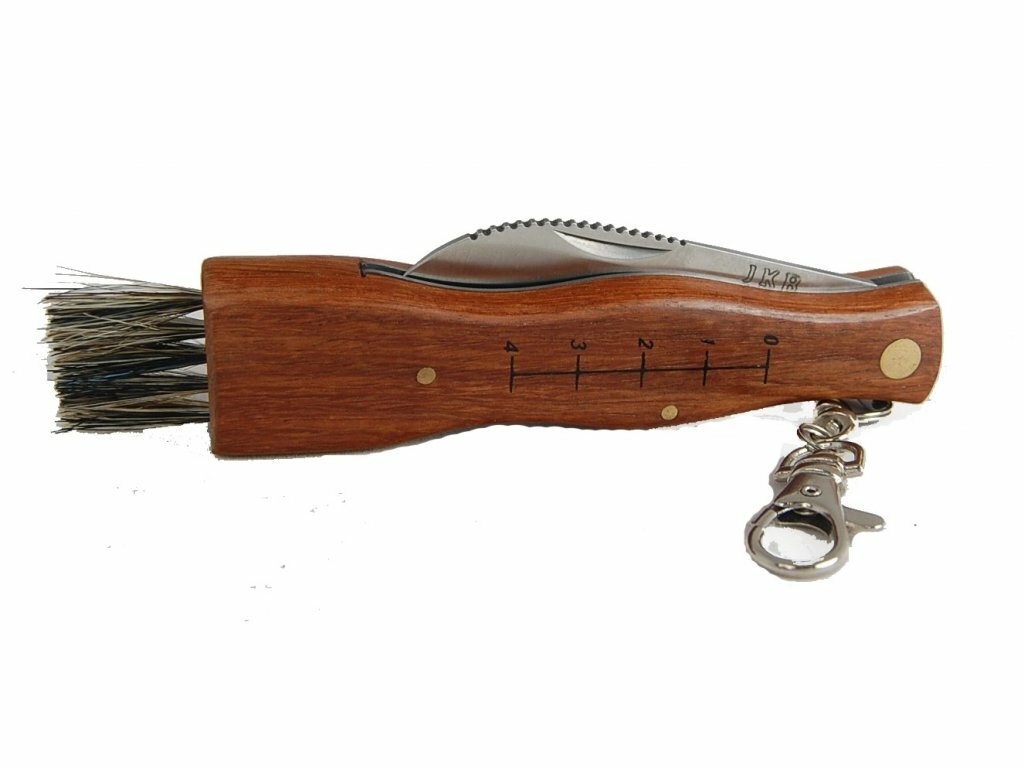 A nyél végén található praktikus ecset kíméletesen távolítja el a tűleveleket és a földet, míg a beépített mérce segít a zsákmány méretének tájékoztató ellenőrzésében. A nejlon tok védi a kést szállítás közben, és biztosítja, hogy mindig kéznél legyen.