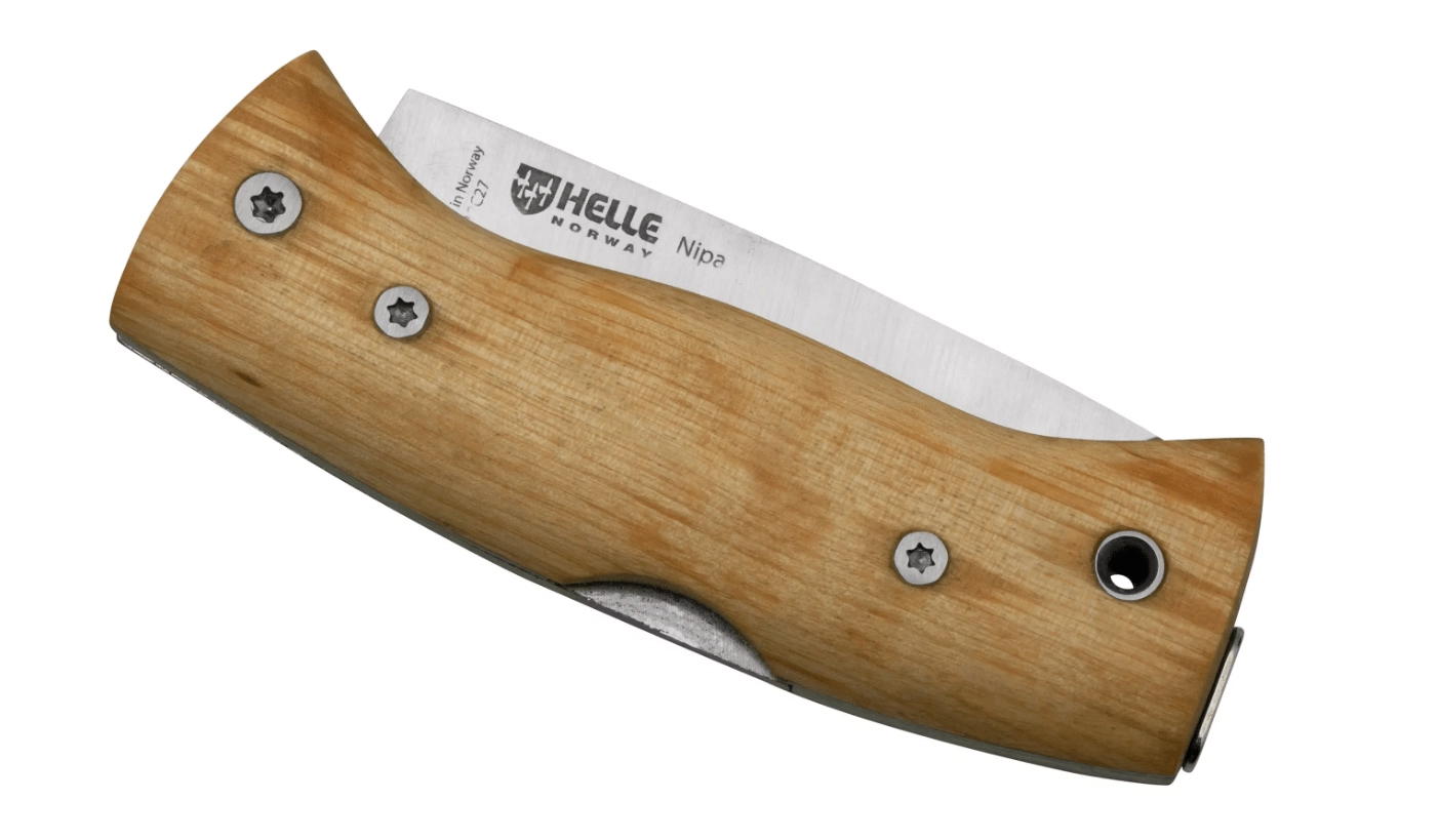 A HELLE Nipa megbízható zsebkés minimalista skandináv dizájnnal, amely megállja a helyét természetben és városban egyaránt. Az egy darabból kézzel megmunkált göcsörtös nyírfa markolat egyedi megjelenést és biztos fogást ad, míg a Sandvik 12C27 rozsdamentes acél hosszú éltartást és könnyű karbantartást garantál.