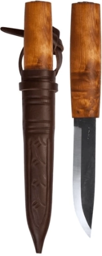 A háromrétegű laminált rozsdamentes acélból készült erős penge hagyományos skandináv élszöggel kiváló élmegtartást, könnyű élezhetőséget és tiszta vágást biztosít fával és élelmiszerekkel végzett munka során. A hordó formájú, karcsúsított gyökérnyírfa markolat kényelmes és biztos fogást ad, természetesen kézre áll, és kiváló irányítást nyújt keresztvas nélkül.