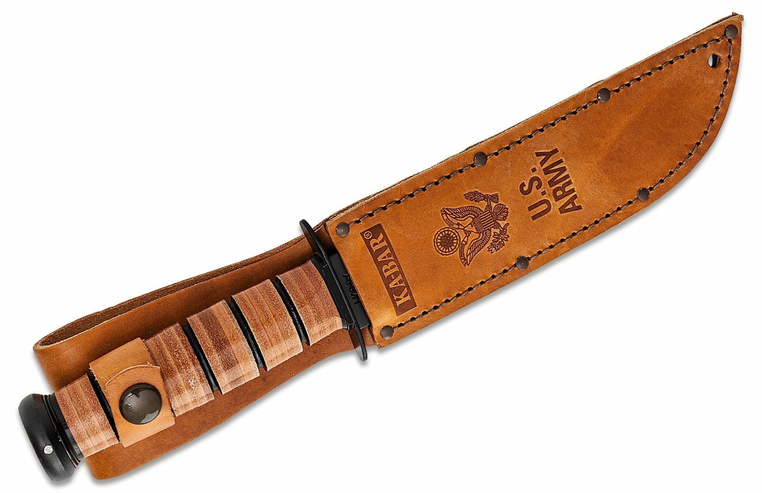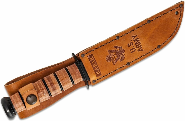 A markolat préselt és csiszolt bőrgyűrűkből készül, amelyek biztos fogást és időtálló megjelenést adnak. A csomag része a minőségi bőr tok U.S. ARMY felirattal és szimbólummal, amelynek köszönhetően a kés biztonságosan tárolható vagy gyűjteményben kiállítható.