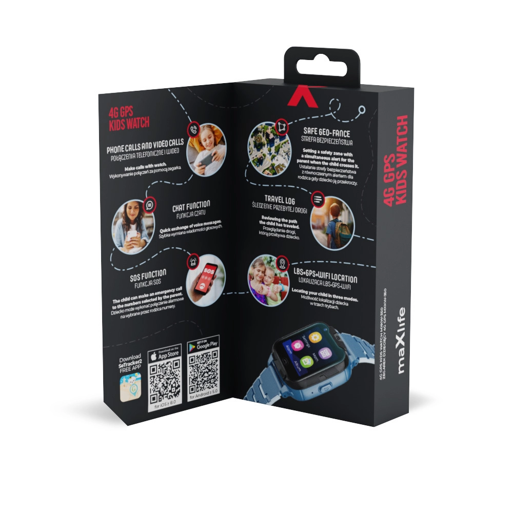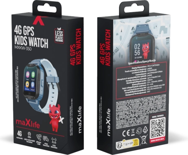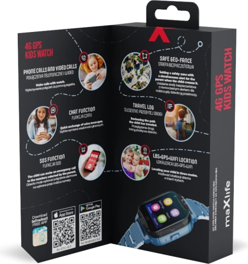 A Maxlife 4G gyerekóra a szülők biztonságérzetét és a gyerekek örömét egyesíti. A pontos GPS/4G/Wi‑Fi helymeghatározásnak köszönhetően könnyen megtudhatja, hol tartózkodik a gyermek, és beállíthat biztonságos zónákat azonnali értesítéssel azok elhagyásakor. A hang- és videóhívások támogatása gyors kapcsolatot biztosít bárhol és bármikor, vészhelyzetben pedig ott a SOS funkció.