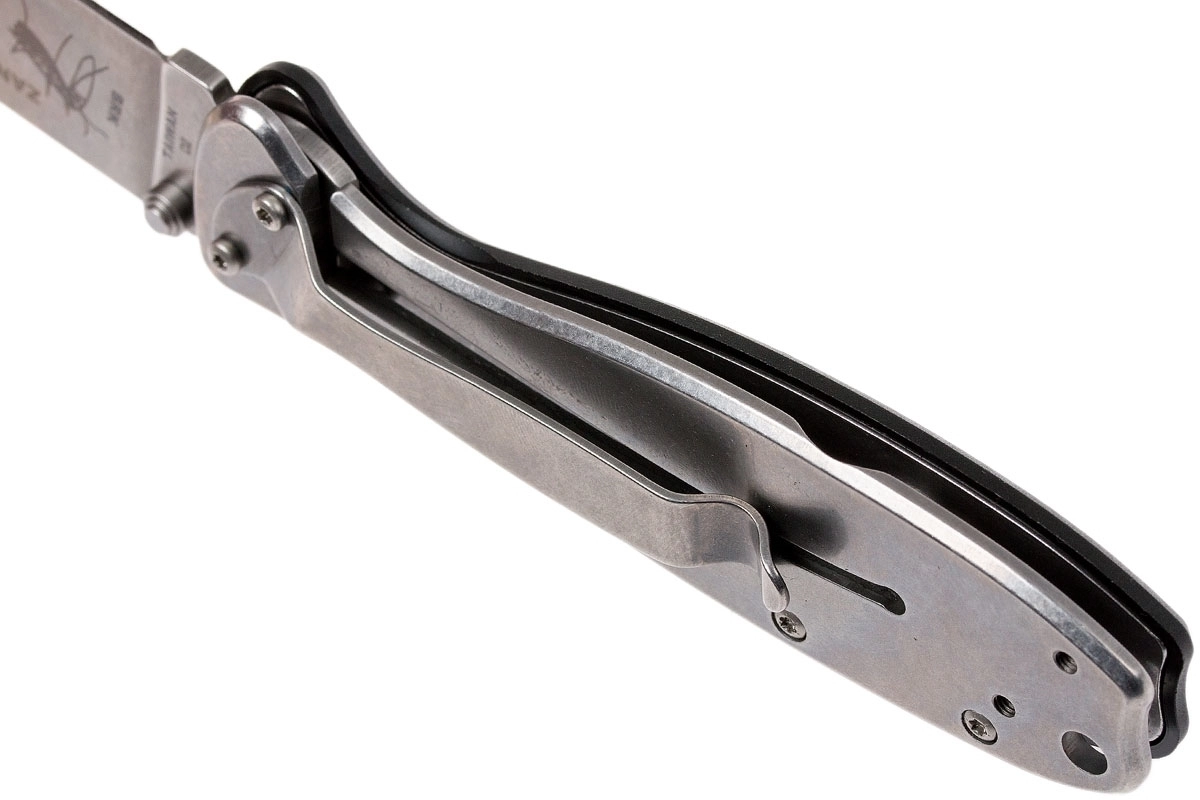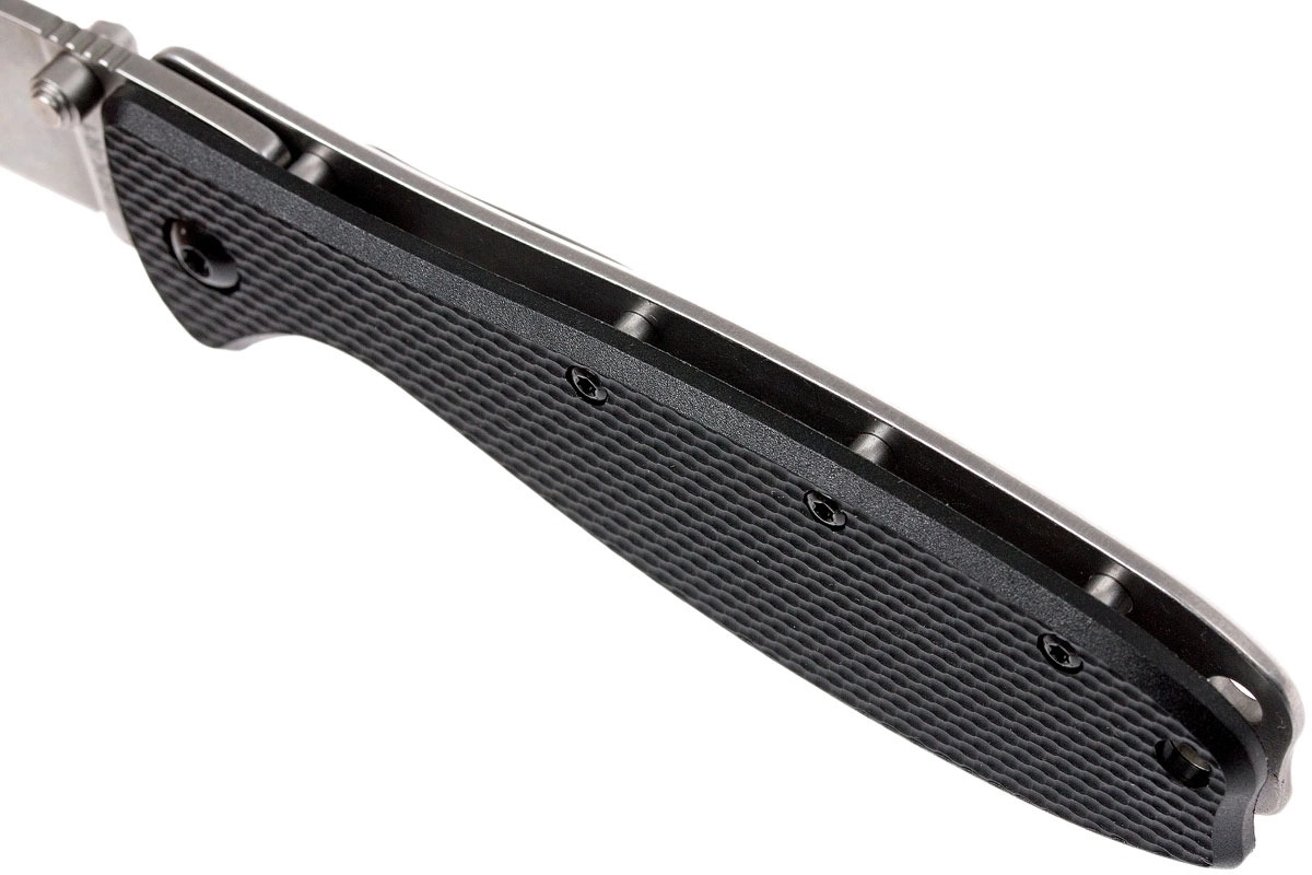 A textúrázott fekete FRN markolatpanele k biztos fogást adnak; a markolatban zsinórlyuk és klip is található a kényelmes zsebben hordáshoz.
