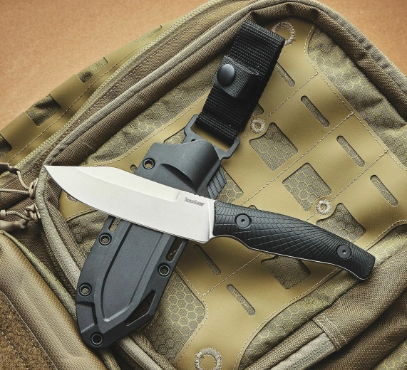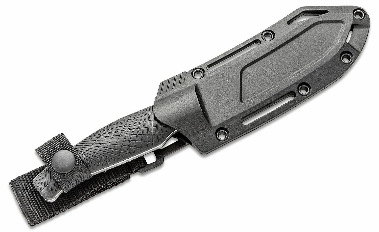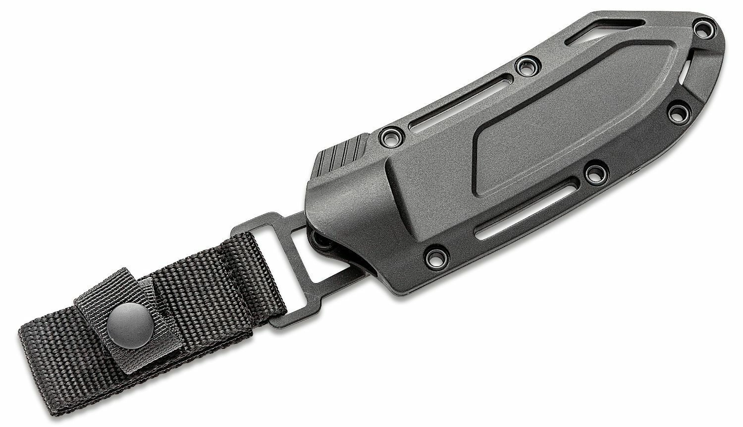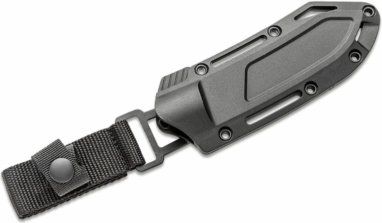 Az ergonomikus FRN markolat precízen mart textúrája biztos fogást garantál nedves körülmények között vagy kesztyűben is. A formázott FRN tok többféle rögzítési lehetőséggel és nejlon biztosítófüllel biztonságosan rögzíti a kést, kényelmes és biztonságos hordást téve lehetővé terepen.