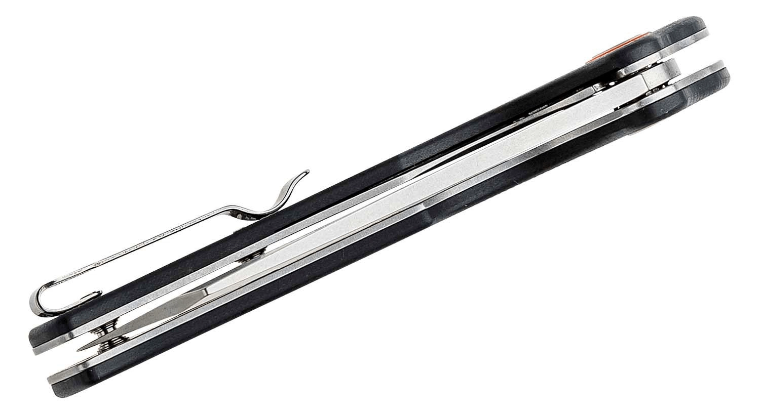 Texturált fekete G10 a biztos fogásért, zsebklip és zsinórlyuk a diszkrét és megbízható viseléshez.