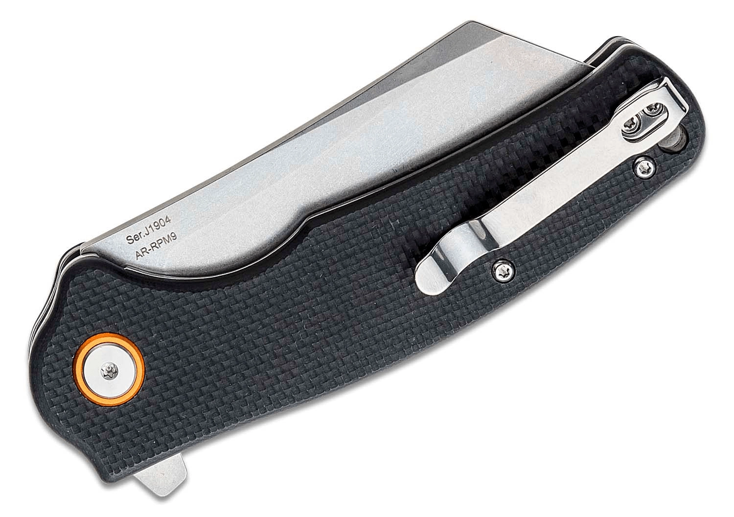 Strapabíró EDC kés, a CJRB Crag cleaver típusú pengével, AR-RPM9 porkohászati acélból és stonewash felülettel, amely a megterhelő feladatokkal is megbirkózik. A gyors nyitást a flipper biztosítja, a biztonságos használatért a liner lock retesz felel, a stabil fogást pedig a fekete G10 markolat adja. Praktikus zsebklip és zsinórlyuk a kényelmes, mindennapos hordáshoz.