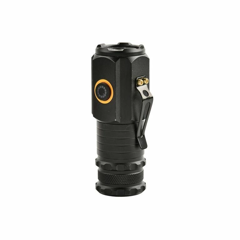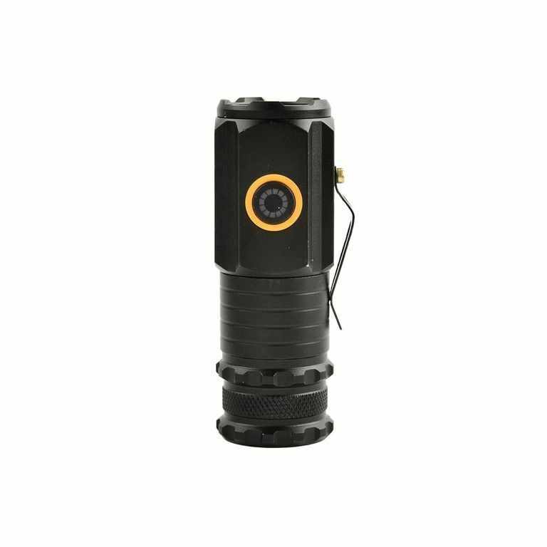 A vezérlés egyszerű az oldalsó gombbal: gyors váltás a magas–közepes–alacsony fényerő között, stroboszkóp hosszú nyomással, turbo dupla nyomással. A tápellátást a mellékelt 18350 (1100 mAh) akku adja USB‑C töltéssel, a töltésjelző pirosan világít. A maximális praktikusságot a mágneses talp és az alumínium klip szolgálja.