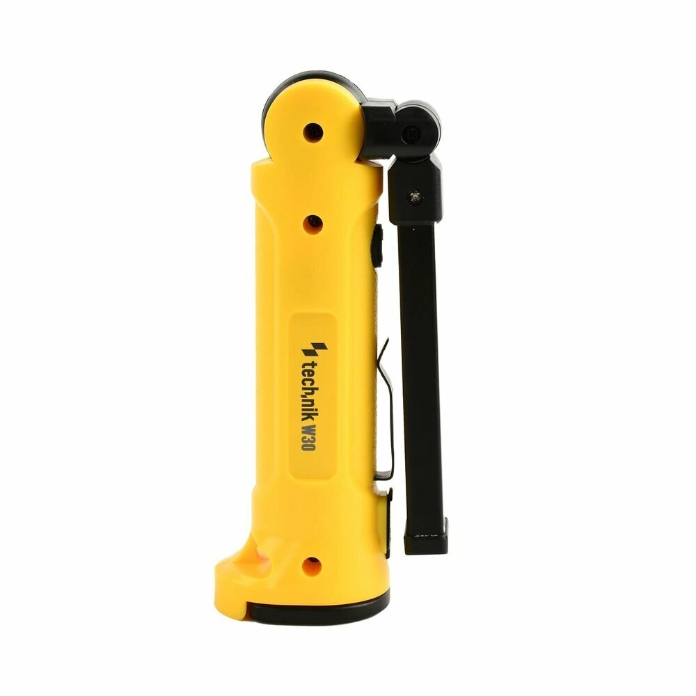 Kompakt és strapabíró Technik W30 munkalámpa COB LED-del, amely egyenletes 150 lm fényt biztosít, kihajtható fejjel, piros folyamatos és villogó fénnyel, beépített mágnessel és fém csipesszel. A 1200 mAh-s akkumulátornak köszönhetően akár 5 órát bír, és USB‑C-n keresztül tölthető. Az IP43 védettség és a 0,5 m-es ejtésállóság ideálissá teszi műhelybe, garázsba és kültéri használatra is.