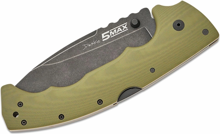 A Cold Steel 5 Max Elite Andrew Demko késkészítővel együttműködésben készült, és kitolja annak határait, mit kell tudnia egy nagy méretű EDC késnek. A CPM‑S35VN acélból készült, sima élű, Black Stonewash felületű Drop Point penge magas korrózióállóságot, hosszú éltartamot és könnyű karbantarthatóságot biztosít.