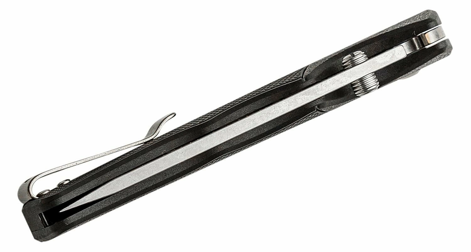 A szabadalmaztatott Tri-Ad Lock kiemelkedő szilárdságáról és biztonságáról ismert igényes használat során is. A teljes értékű hüvelykujjtüske gyors, egykezes nyitást tesz lehetővé. A lapos GFN (üvegszállal erősített nylon) markolat könnyű, strapabíró és jól kézre áll. A praktikus klip és a zsinórlyuk bővíti a hordási és rögzítési lehetőségeket.