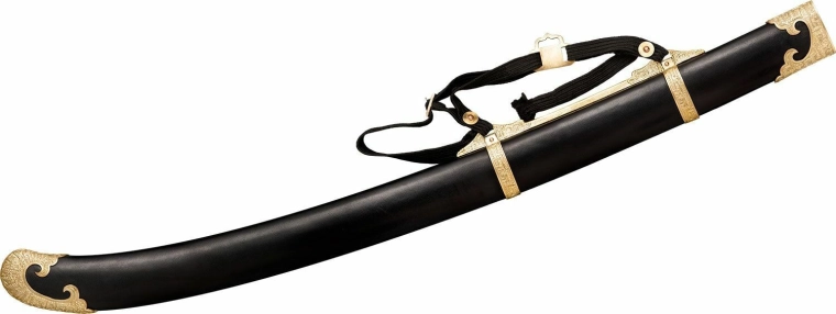 Elegáns, történelmi kínai lovasszablya replikája gyűjtők és fegyverrajongók számára. Kínál kézzel kovácsolt 1060-as acél pengét, dekoratív sárgaréz szerelékeket és keményfa markolatot fekete selyemzsinórral fonva. A csomag része egy bőr hüvely sárgaréz elemekkel a biztonságos tároláshoz és az impozáns megjelenéshez.
