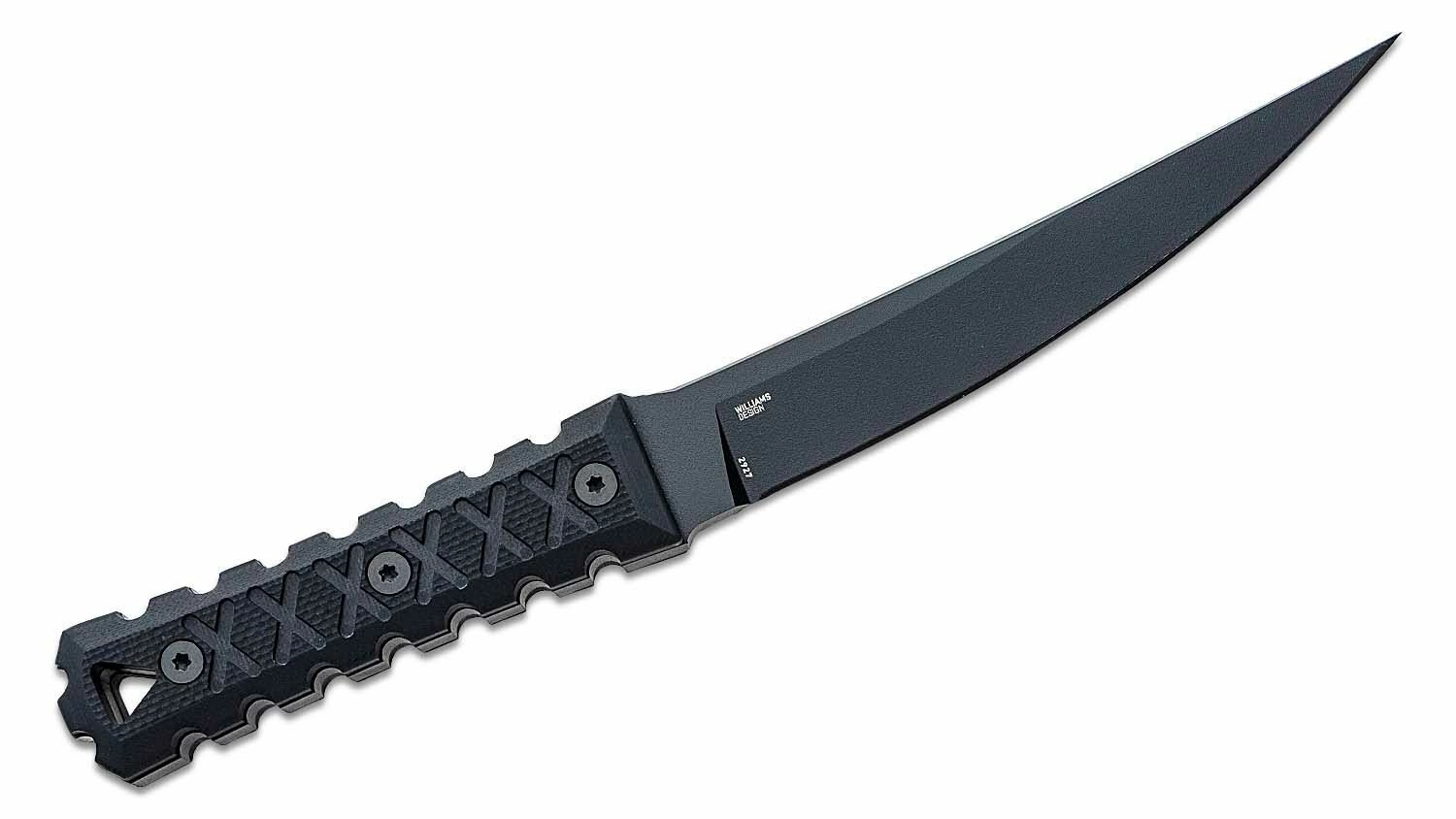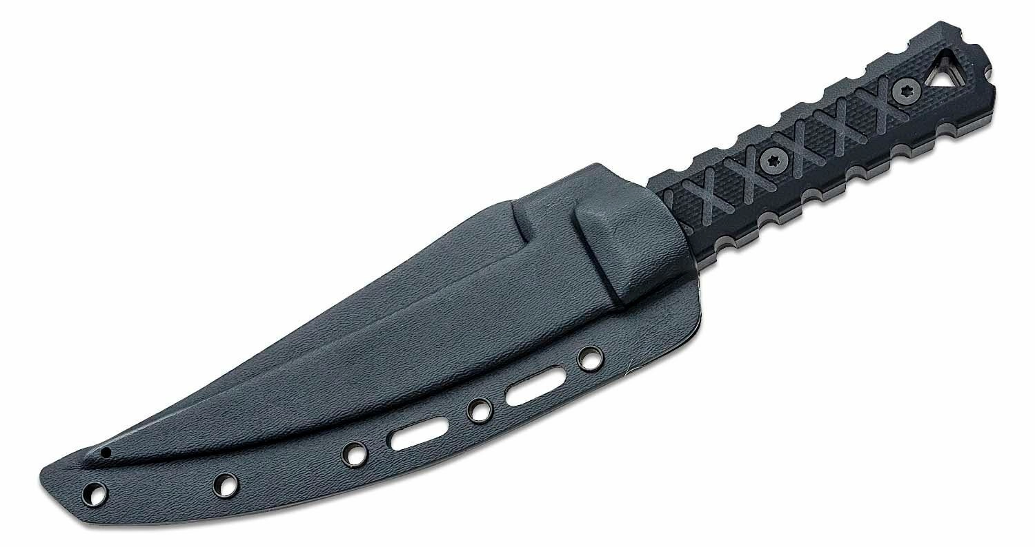 Az ergonomikus, fekete G10 markolat biztos fogást garantál nedvesen vagy kesztyűben is. A mellékelt Boltaron tok többféle rögzítési lehetőséget és biztonságos hordást tesz lehetővé övön vagy felszerelésen.