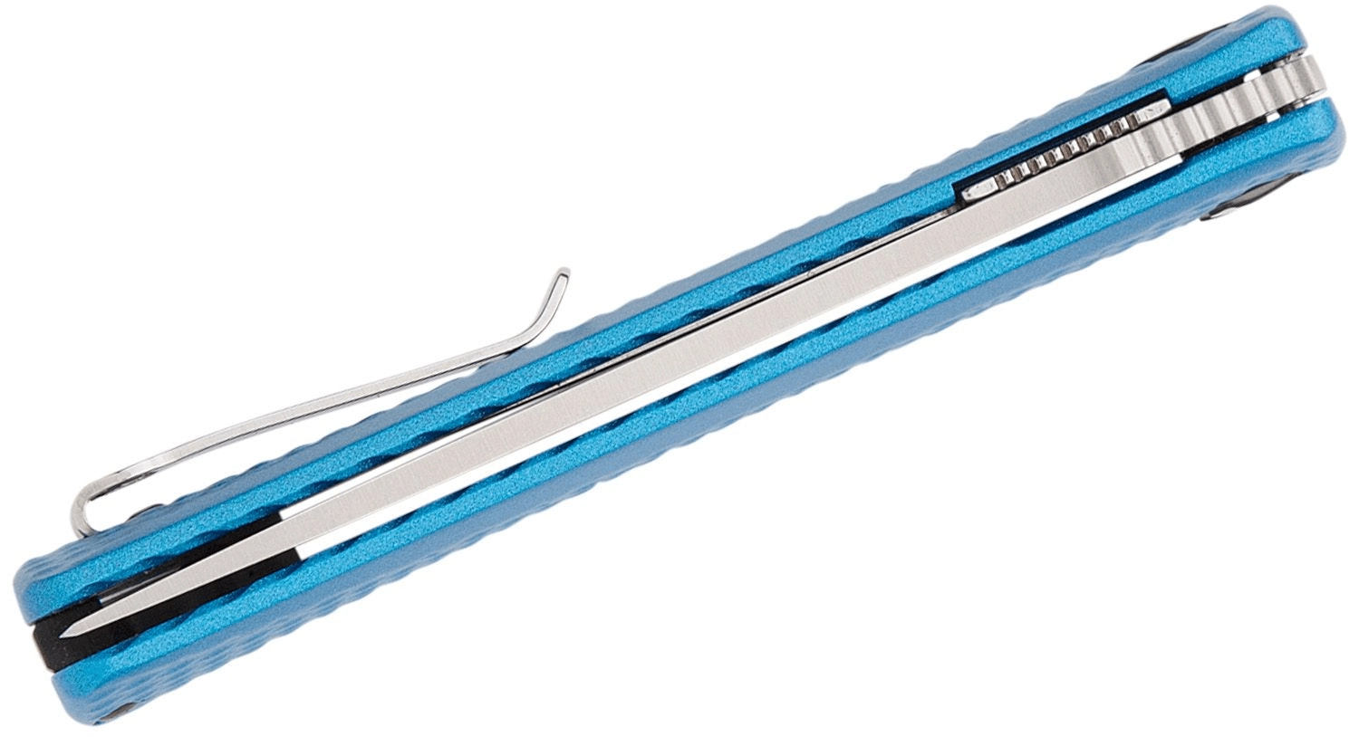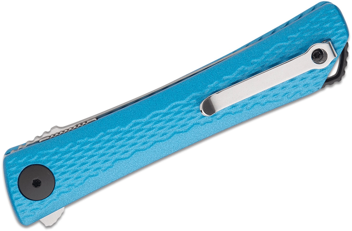 A kék színű, mart alumínium markolat finom textúrával biztos fogást és alacsony tömeget kínál. A praktikus felszereltséghez zsebklip a diszkrét hordáshoz és zsinórlyuk tartozik. Remek választás EDC-re, csomagolások vágására, apróbb munkákhoz és szabadtéri használathoz.
