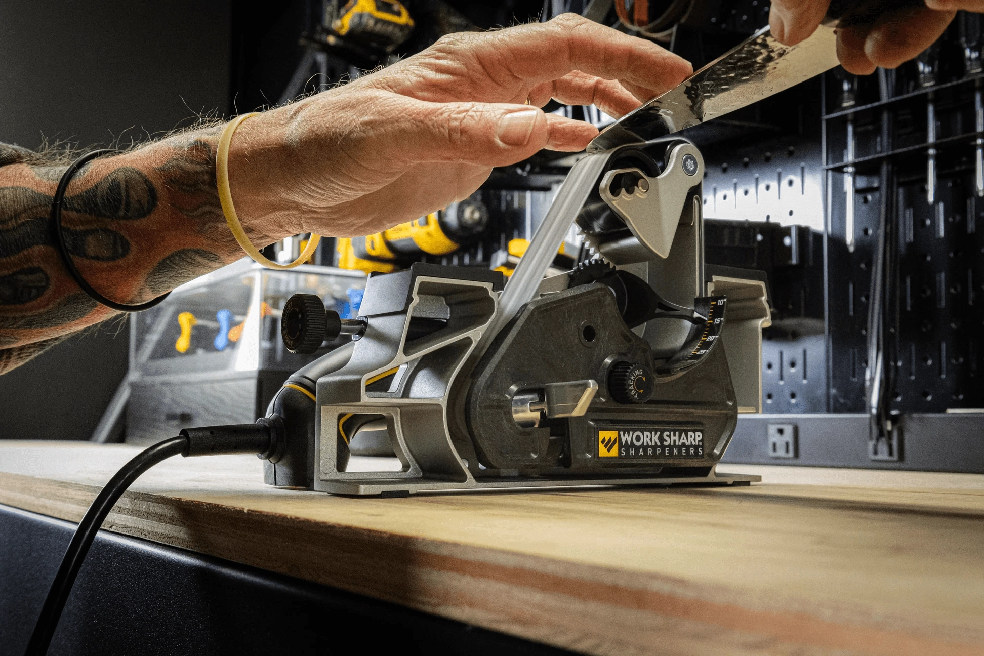 A Work Sharp Blade Grinder Mk2 feltét a Ken Onion Edition Knife & Tool Sharpener Mk.2 készülékét nagy teljesítményű, vízszintes asztali élezőrendszerré alakítja. A teljesen állítható, 10° és 35° közötti élszögeknek és a nagyobb, 1" x 18" szíjaknak köszönhetően maximális pontosságot, kontrollt és megismételhetőséget ér el konyhai, kültéri és munkakések élezésekor.