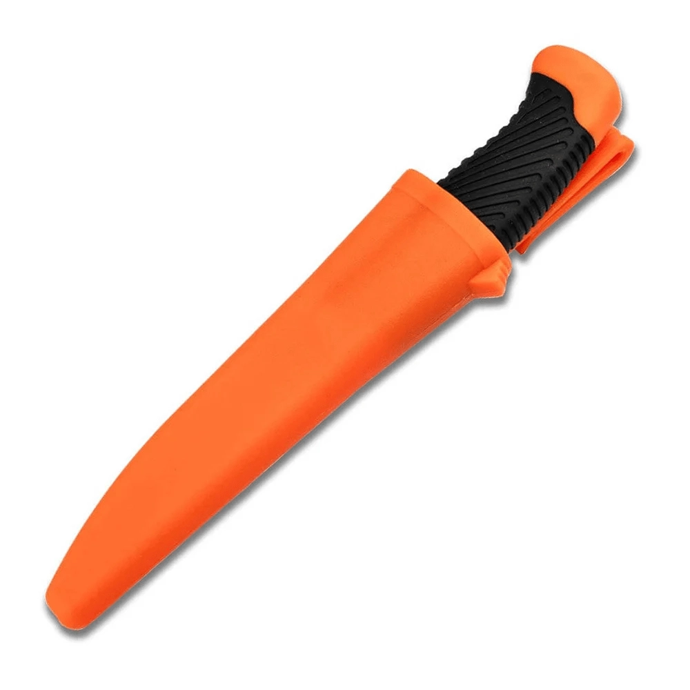 A narancssárga markolat texturált, csúszásgátló gumírozott felülete biztos és kényelmes fogást nyújt nedves környezetben is. A strapabíró műanyag tok ellenáll az átszúrásnak és az átvágásnak, beépített klipje megkönnyíti az övre rögzítést, vízelvezető nyílása pedig segíti a nedvesség távozását.