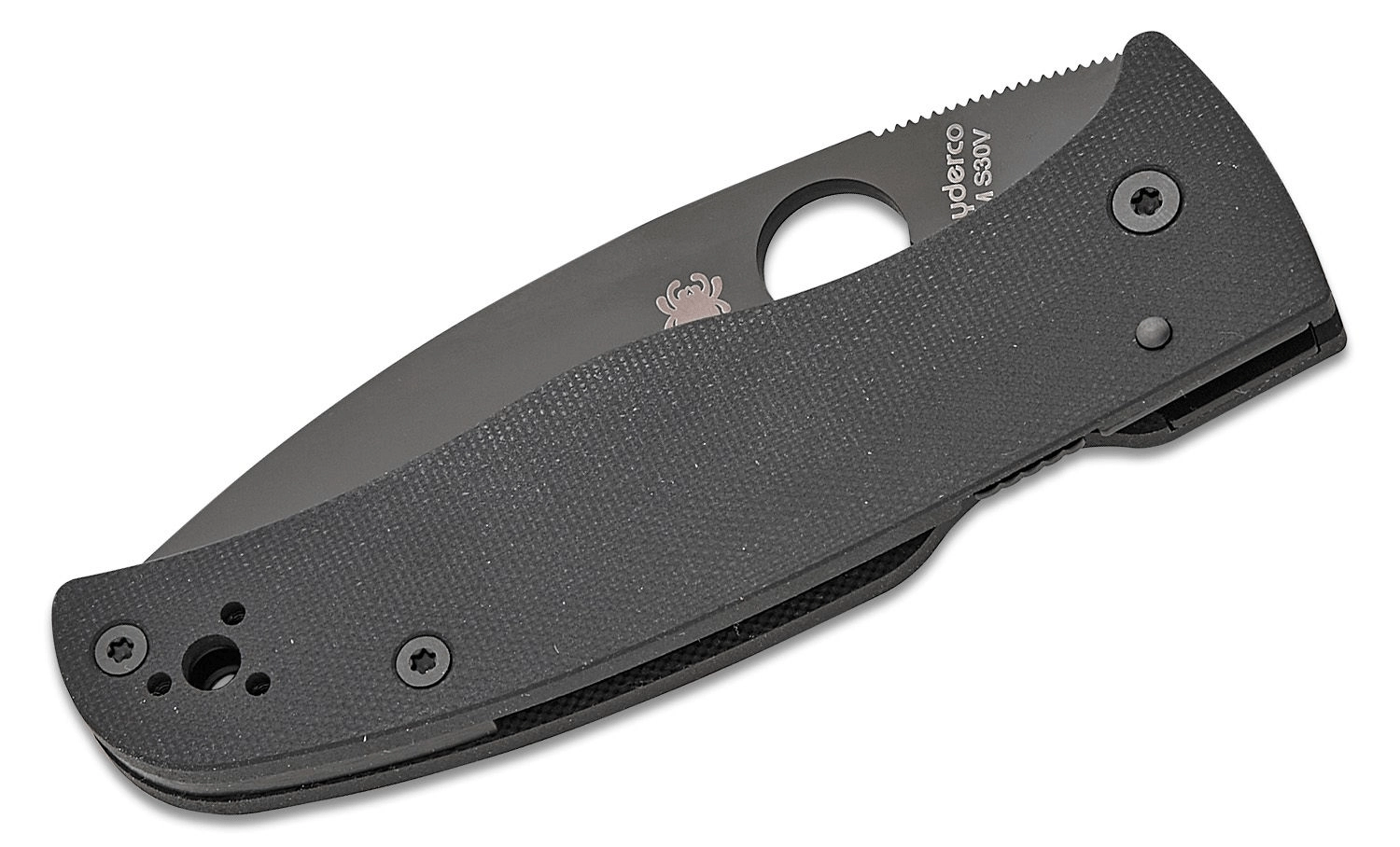 A prémium CPM S30V rozsdamentes acél és a DLC felület kombinációja nagyszerű élmegtartást, valamint fokozott korrózió- és kopásállóságot biztosít. A SpyderHole hüvelykujjnyílással a nyitás gyors és intuitív, míg a markolat hátán lévő Compression Lock biztonságos és megbízható pengerögzítést nyújt.