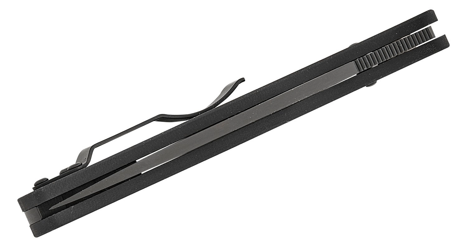 A G10 markolat acél betétekhez csavarozva magabiztos fogást ad még nehezebb körülmények között is. A kétoldalas fém klip lehetővé teszi a tip-up hordást bal- és jobb oldalon, a zsinórlyuk pedig bővíti a rögzítési vagy személyre szabási lehetőségeket.