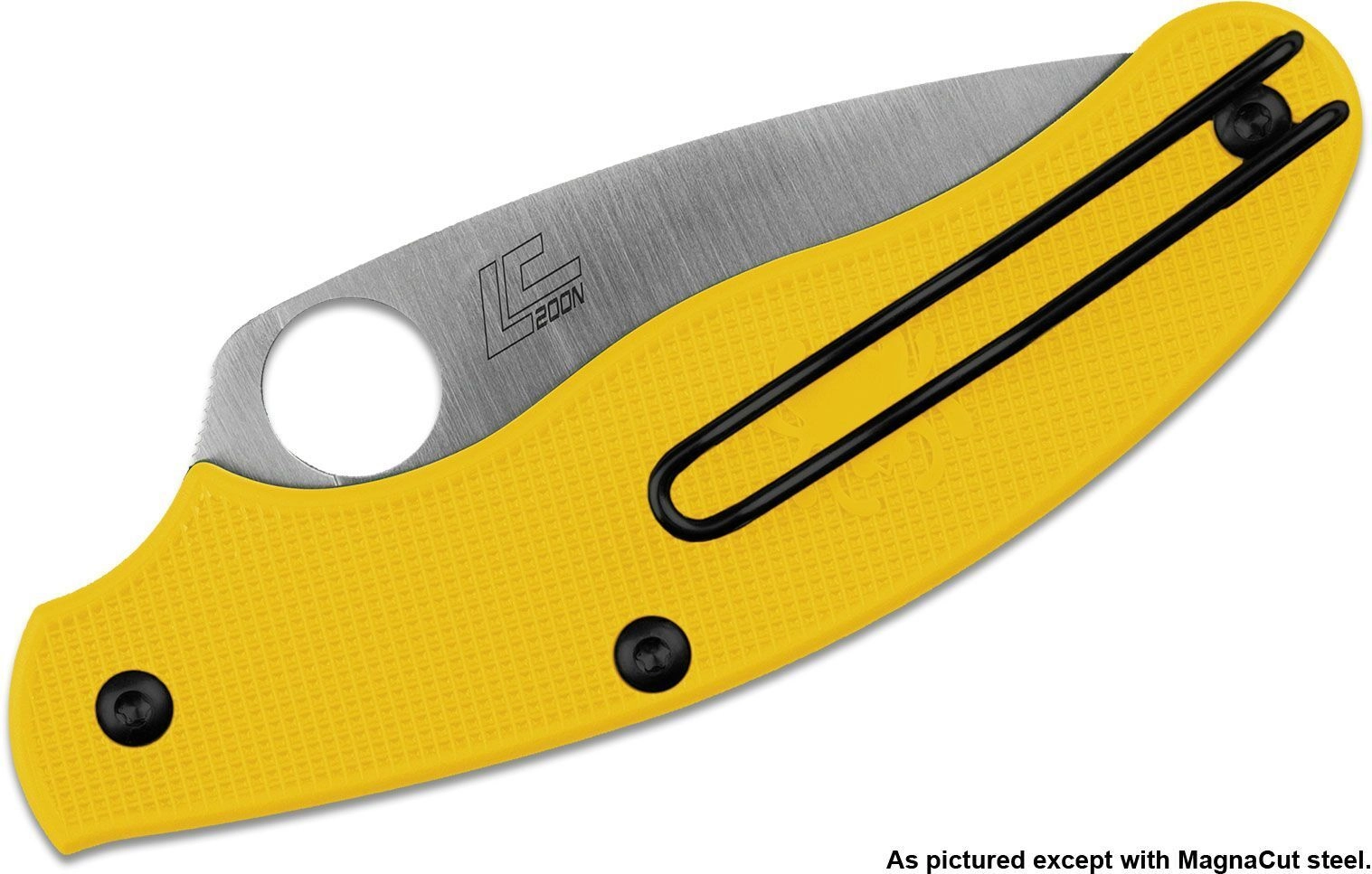 A Leaf Shape levélformájú penge simára élezett vágóéllel és teljes lapos köszörüléssel tiszta, kontrollált vágásokat és kiváló vágóteljesítményt nyújt. A nyitás gyors és intuitív a jellegzetes SpyderHole nyitónyílásnak köszönhetően. A FRN (Fiberglass Reinforced Nylon) texturált markolat élénk sárga színben biztos fogást kínál nedvesen is, és kiváló láthatóságot biztosít.