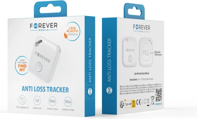 A kompakt FOREVER FT-100 lokátor segít, hogy a kulcsok, táska vagy hátizsák mindig kézben legyen. Együttműködik az Apple Find My rendszerrel, lehetővé teszi a valós idejű követést, a gyors megtalálást hangjelzés segítségével, és távolságriasztást kínál az elvesztés megelőzésére. A adatvédelem, az IPX5 vízállóság és a cserélhető CR2032 elem révén ideális mindennapi segítőtárs.