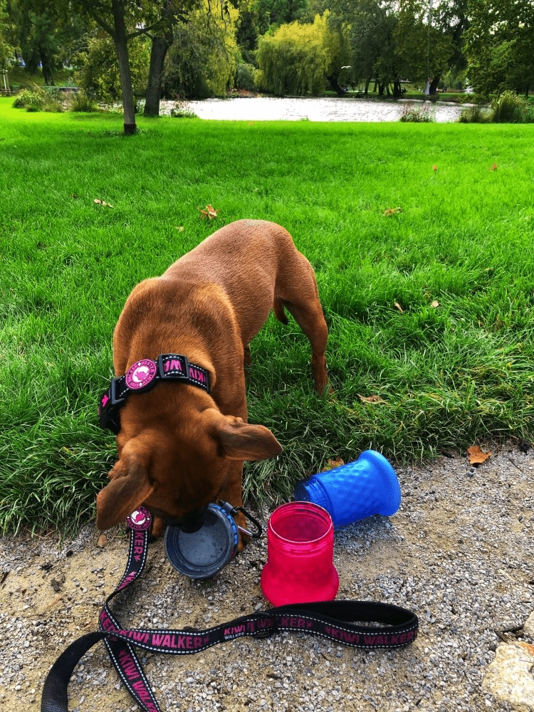 A felső rész praktikus itatótálként szolgál, így kedvencét kényelmesen megitathatja a parkban vagy a játszótéren is.