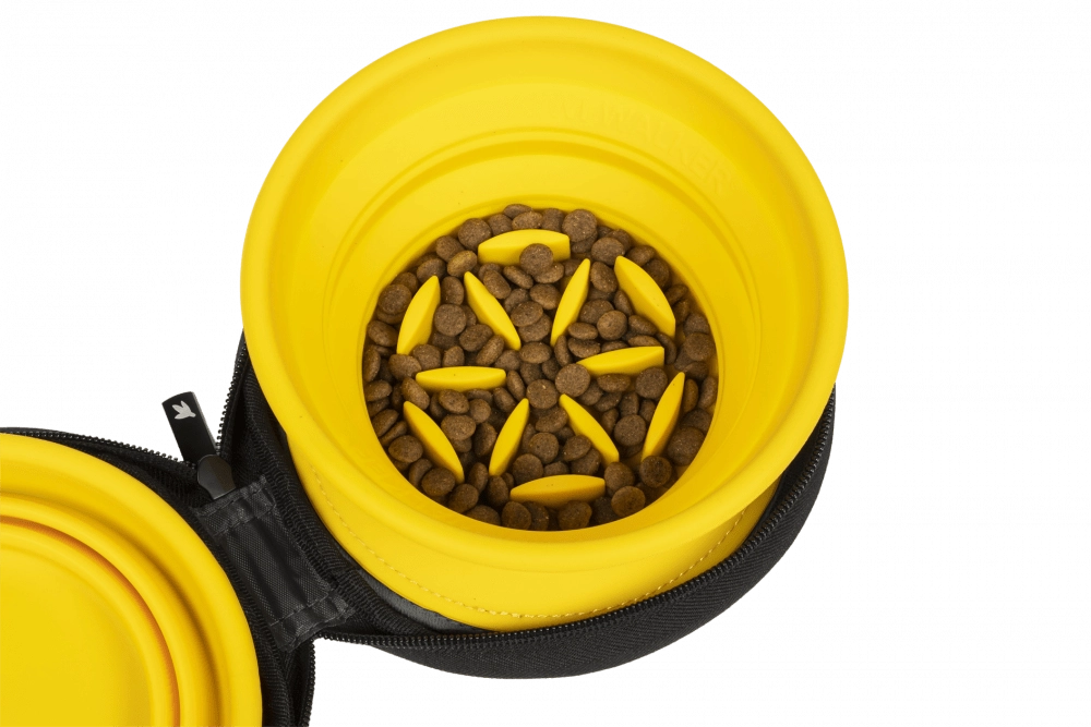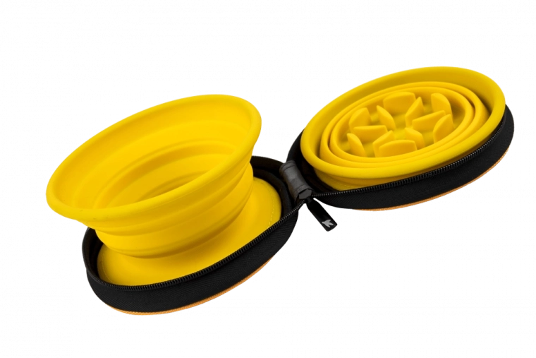 Praktikus utazó készlet két összehajtható, minőségi szilikon tálból, egyenként 350 ml űrtartalommal – ideális eledelhez és vízhez kedvenced számára. Az egyik tál slow feeder funkcióval rendelkezik a falás lassítására, a másik klasszikus tálként szolgál. A készlet strapabíró tokban van elhelyezve, belül tépőzárral, kívül minőségi cipzárral a biztonságos záródásért.