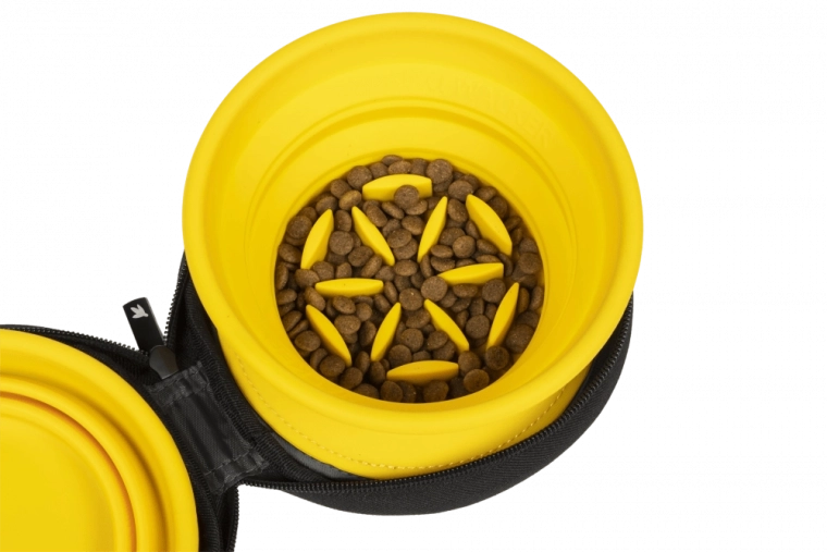 Az egyik tál speciális kialakítása slow feederként működik, amely lassítja a falást, támogatja a jobb emésztést és segít megelőzni a puffadást. A másik tál sima felületű a mindennapi használathoz. Mindkettő könnyű, tartós és egyszerűen tisztítható – ideális kirándulásokra, nyaralásra és napi használatra.