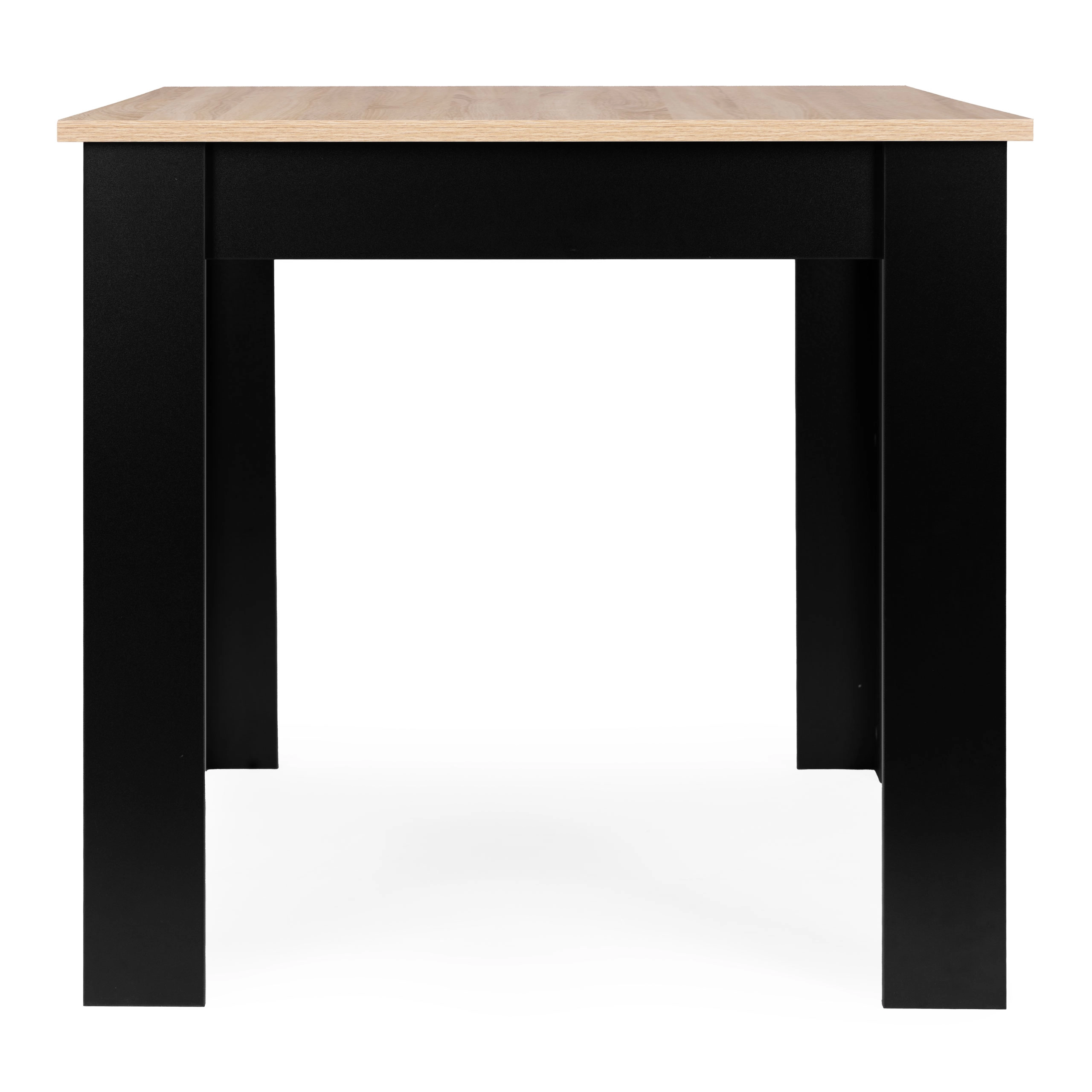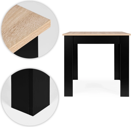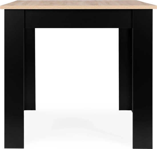 Elegáns és funkcionális asztal konyhába és étkezőbe, modern, kétszínű kivitelben: a sonoma dekor természetes megjelenésű lap fekete, kontrasztos lábakkal. Univerzális dizájn, amely illik a modern és skandináv enteriőrökhöz is, és kellemes helyet teremt a közös pillanatokhoz reggelihez, kávéhoz és családi vacsorákhoz.