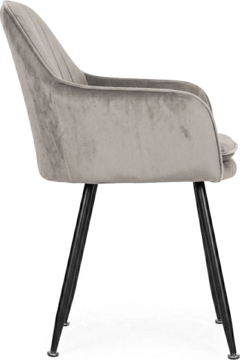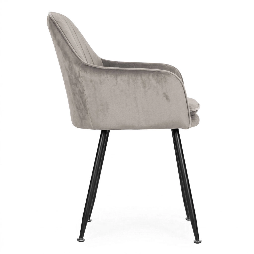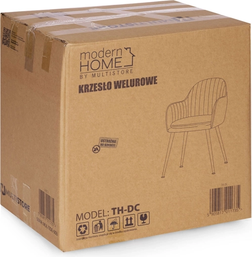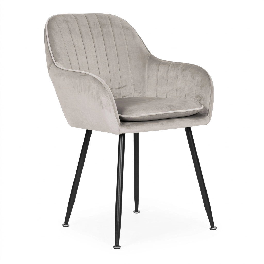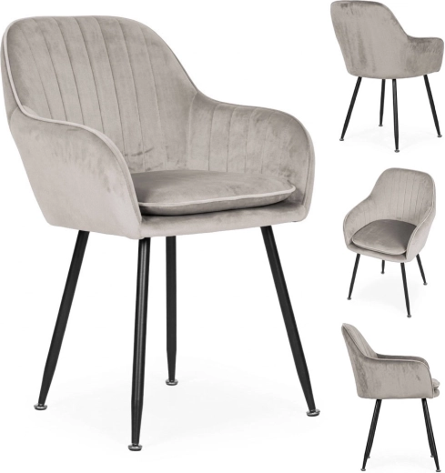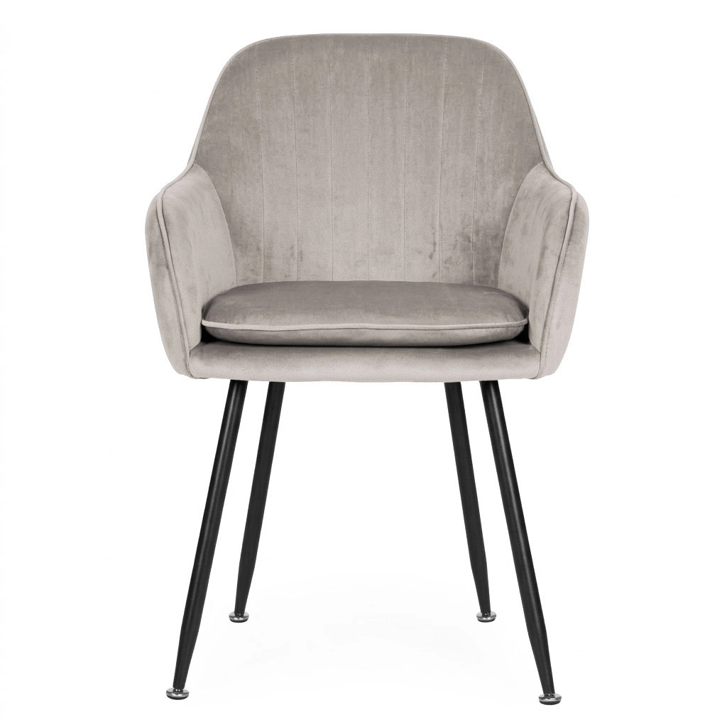 A ModernHome stílusos étkezőszéke elegáns világosszürke színben ötvözi a modern designt, a puha bársony kárpitozást és a karcsú acél lábakat a stabilitás és kényelem érdekében. A beépített kartámaszoknak, a kényelmes, PUR hab ülőfelületnek és az univerzális megjelenésnek köszönhetően kiválóan illik a modern, minimalista és glamour enteriőrökbe. Teherbírás akár 120 kg.
