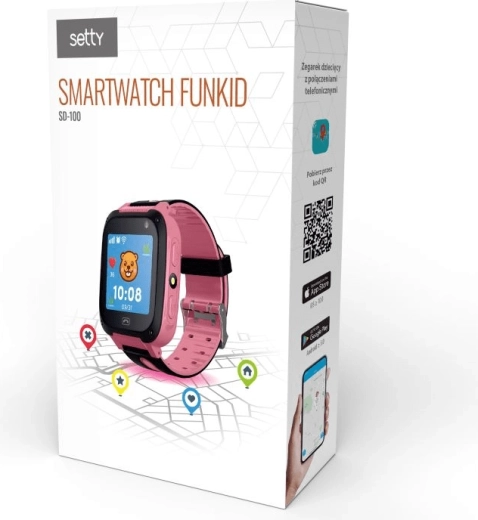 A Setty FunKids SD-100 gyerek okosóra rózsaszín színben egyesíti a biztonságot, a szórakozást és az egyszerű kezelhetőséget. A LBS helymeghatározónak, a hangmonitorozásnak és az SOS gombnak köszönhetően áttekintést kap a gyermek helyzetéről és helyzetéről. Nem hiányzik a érintőkijelző, a chat, a távoli kamera, a zseblámpa és a matematikai játék sem. A 400 mAh-s akkumulátor akár 3 nap készenléti időt biztosít, és az óra kompatibilis Androiddal és iOS-szel.