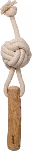 A Quapas! Shoot interaktív kutyajáték a masszív pamutkötelet és a természetes kávéfát ötvözi a biztonságos rágáshoz és húzáshoz. Támogatja a egészséges fogakat és ínyt, tartós, és fenntartható anyagokból készül.