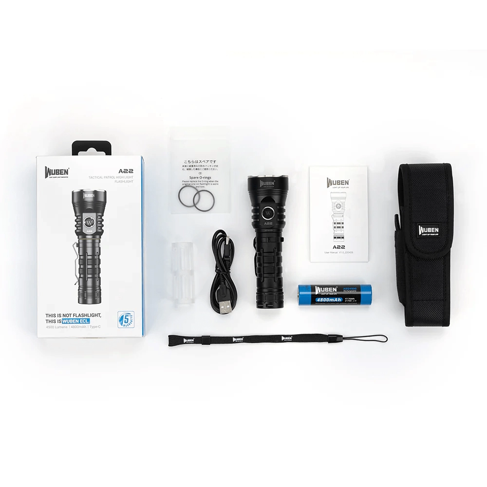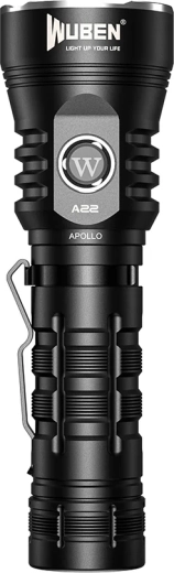A Wuben A22 megbízható zseblámpa kempingezéshez, túrázáshoz, műhelybe és otthonra. A CREE XHP70.2 LED-nek köszönhetően rendkívül erős fénycsóvát ad, akár 4 500 lumen fényárammal és 290 méteres hatótávval. Az ergonomikus fémház csipesszel, mély reflektorral és oldalsó kapcsolóval kényelmes és biztonságos használatot nyújt még nehéz körülmények között is.