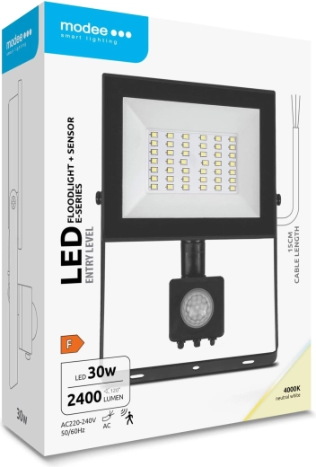 A MODEE LED reflektor E‑series érzékelővel megbízható megoldás kültéri és félig fedett terekhez, ahol nagy teljesítményű, energiatakarékos és automatikus világításra van szükség. A 2400 lm fényáram és a 4000 K semleges színhőmérséklet tiszta, természetes fényt ad a biztonságos közlekedéshez és felügyelethez.