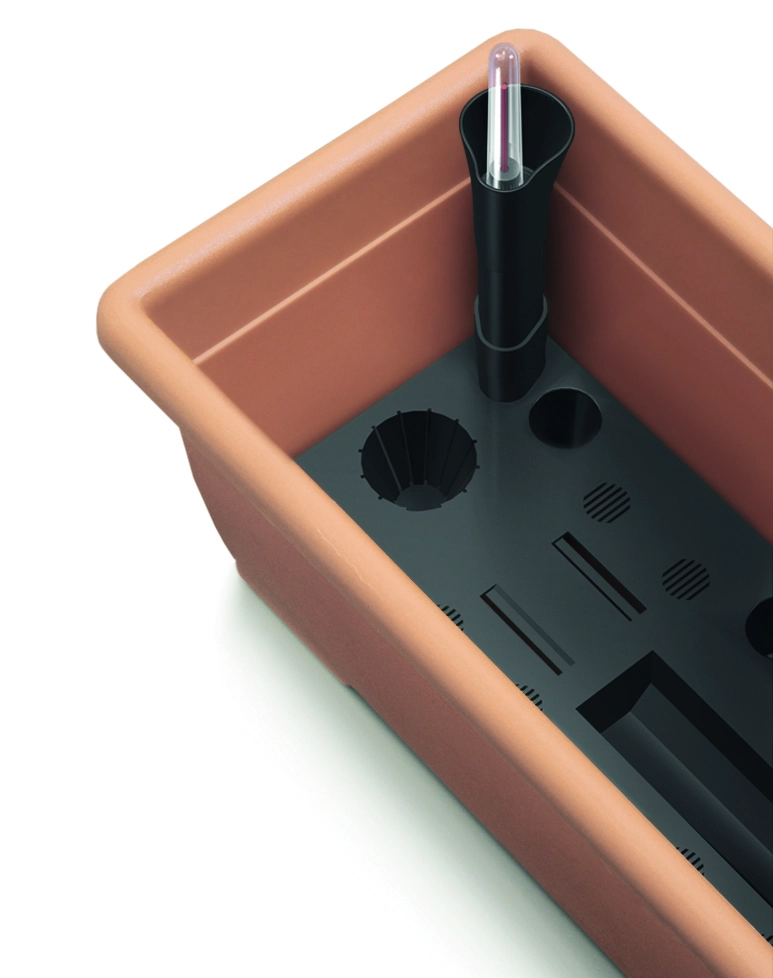 Az integrált önöntöző rendszer a tartály aljában tartja a vízkészletet, így a növények fokozatosan, igényeik szerint jutnak nedvességhez. Ez csökkenti az öntözés gyakoriságát, és javítja a növények vitalitását, különösen forró napokon. A rendszer hidroponikus termesztésre is alkalmas, megkönnyítve a gondozást kezdők és tapasztalt kertészek számára egyaránt.
