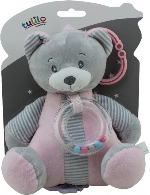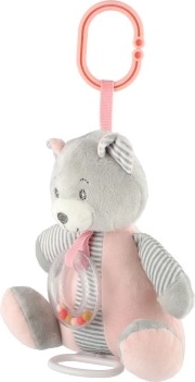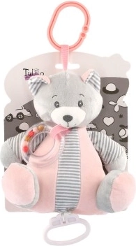 A mi csörlős plüss macink úgy lett tervezve, hogy otthonosságot és kényelmet nyújtson a gyerekeknek. A maciba helyezett zenei szerkezet lágy dallamot indít el, amely ideális az elaltatásra. A plüss anyag puha és kíméletes a gyermekbőrrel. A játék csörgővel van felszerelve a nyaknál, amely mozgás közben hangokat ad ki, serkentve a gyermek hallásérzékelését. A praktikus csipesz révén a macit könnyen fel lehet rögzíteni a kiságyhoz, babakocsihoz vagy autóüléshez, ami ideális otthon vagy utazás közben.