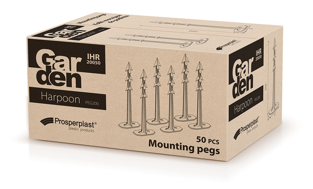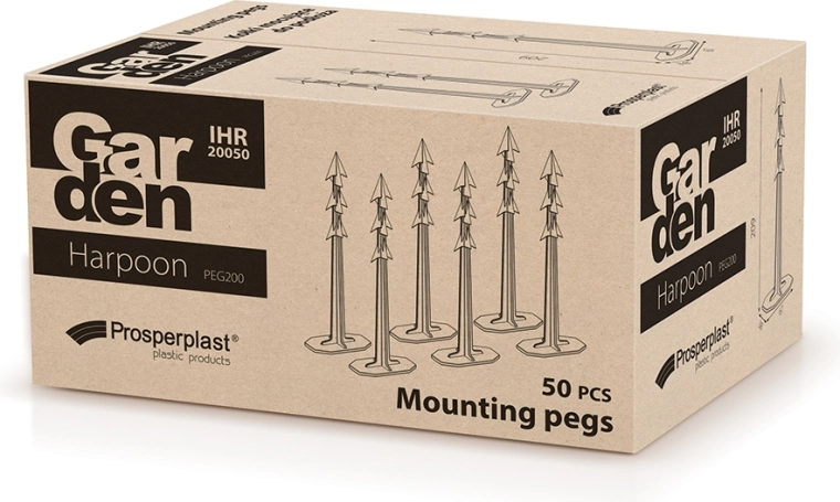 Rögzítse megbízhatóan a kerti textíliákat, fóliákat és ágyásszegélyeket. A HARPOON PEG 200 rögzítő tüskék a 20,9 cm-es hosszú, mély rögzítést adó szárrészt profilozott, horgos tüskével kombinálják, amely a legnehezebb körülmények között is a helyén tartja az anyagot. A masszív műanyag ellenáll a nedvességnek, fagynak és az UV-sugárzásnak, így hosszú ideig megőrzi alakját és funkcionalitását.
