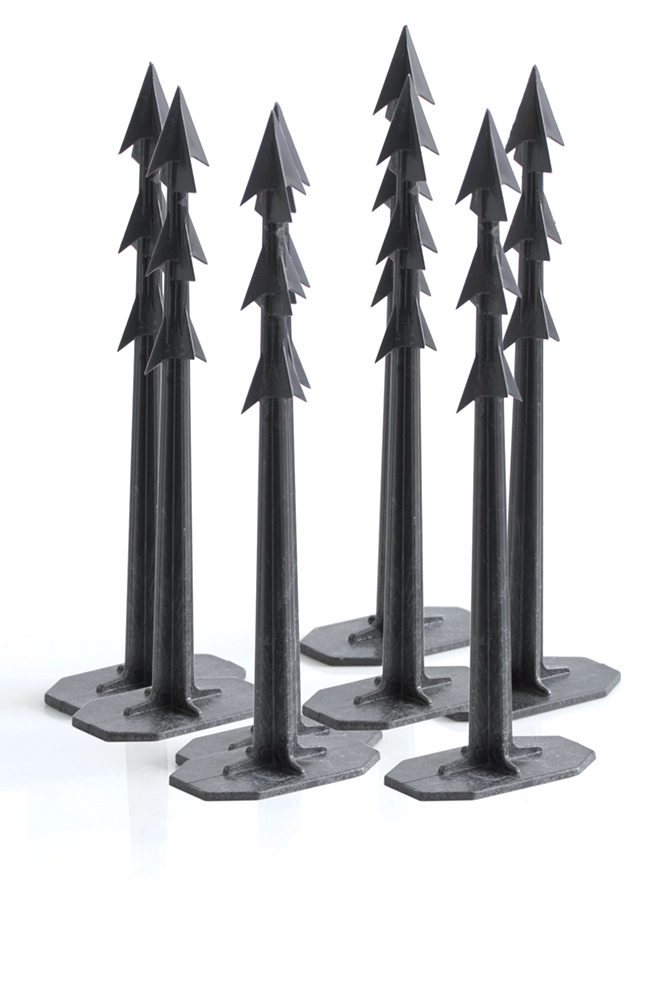 A tüske testén lévő speciális horgok megakadályozzák a rögzített anyagok kihúzódását és elmozdulását, hosszú távú stabilitást biztosítva az ágyásoknak.
