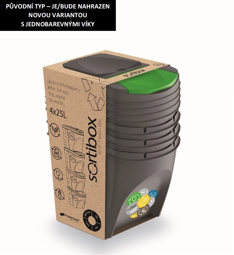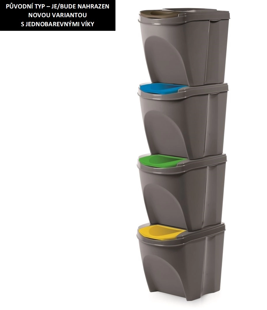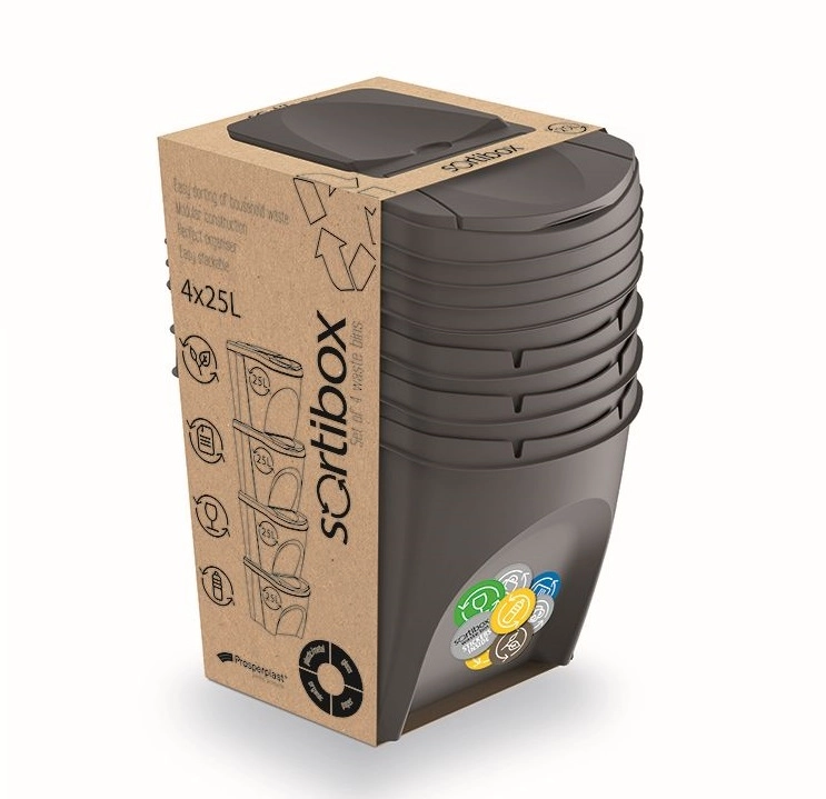 Sortibox III szelektív hulladékgyűjtő, 4 darabos készlet, szürke kő, 4×25 l