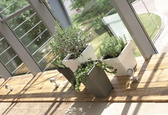 A praktikus 12,9 l űrtartalom elegendő helyet biztosít a gyökérzet számára, míg a könnyű konstrukció megkönnyíti a kezelést és az áthelyezést igény szerint. A négyzet alaprajz jól illik sarkokba és falak mentén is, és letisztult vonalakat teremt a térben.