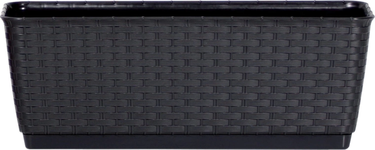 Az antracit színű, 30 cm hosszú Ratolla P virágláda alátéttel elegáns kiegészítő beltérre és kültérre egyaránt. A rattanfonás hű imitációja luxus hatást kelt, míg az integrált alátét optimális vízelvezetést biztosít a növények egészséges növekedéséhez. A tartós műanyag és a könnyű karbantartás praktikus választássá teszik erkélyekre, teraszokra és ablakpárkányokra.