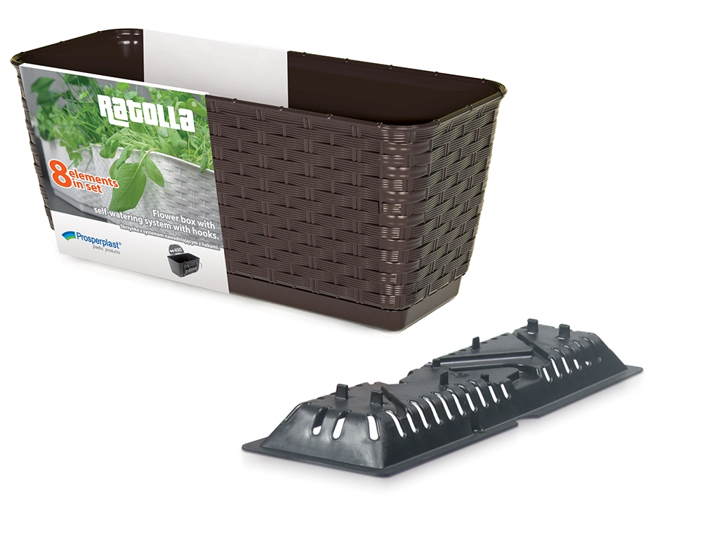 Dobd fel erkélyedet vagy ablakodat a stílusos RATOLLA PW virágládával elegáns rattan textúrával. A tartós műanyag ellenáll az időjárás viszontagságainak és a mechanikai igénybevételnek, a praktikus fém kampók pedig gyors és stabil felakasztást tesznek lehetővé további tartók nélkül. Az integrált tálca és a belső betét a jobb levegőáramlással és a felesleges víz elvezetésével támogatja a növények egészséges növekedését.