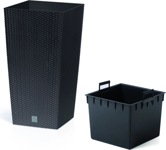 Elegáns, rattan hatású virágtartó beltérre és kültérre, amely UV- és időjárásálló, könnyű és stabil műanyagból készült, valamint kivehető betéttel rendelkezik az egyszerű ültetéshez és karbantartáshoz. Tökéletes választás teraszra, erkélyre és nappaliba is.