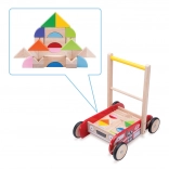 A csomag része 32 kocka különböző formákban és színekben, amelyek támogatják a kéz–szem koordinációt, a logikus gondolkodást és a kreativitást. A gyerekek szállíthatják a kockákat, építhetnek, vagy a platóba rakhatják őket, ami fejleszti a türelmet és a térbeli látást.