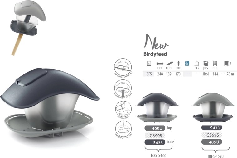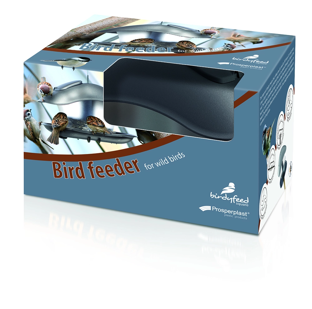 Stílusos és tartós BIRDYFEED SQUARE madáretető antracitszínben, amely egész évben biztonságos és száraz etetést biztosít. A átlátszó tartálynak köszönhetően mindig látható a magok szintje, a levehető tető pedig megkönnyíti az utántöltést és a tisztítást. A ferde tető védi az eleséget az esőtől és a hótól, az univerzális kialakítás pedig lehetővé teszi a felakasztást, korlátra rögzítést vagy cölöpre helyezést.