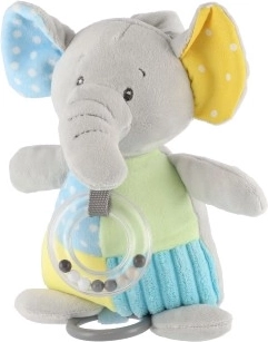 Hozza gyermeke életébe az örömet az imádnivaló plüss elefánttal, melynek puha és sima felülete ideális az ölelgetéshez. A meghúzható mechanizmussal játszott nyugtató dallamon kívül a játékot csörgő golyókkal is díszítik, amelyek hozzájárulnak a hallási észlelés fejlesztéséhez.