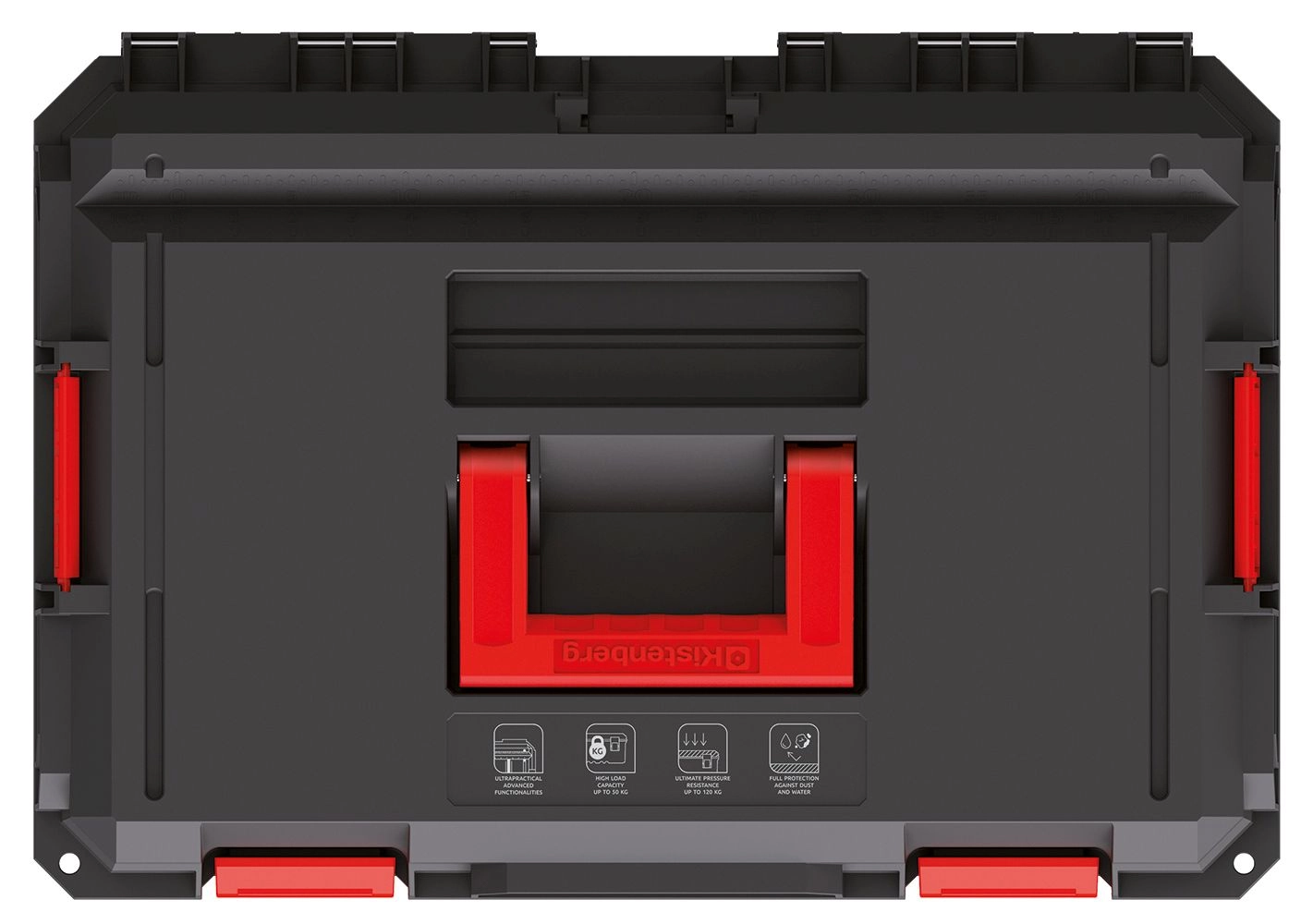 A fedélbe integrált tömítés megbízhatóan védi a tartalmat a portól és a nedvességtől, így a szerszámok zord körülmények között is biztonságban vannak.