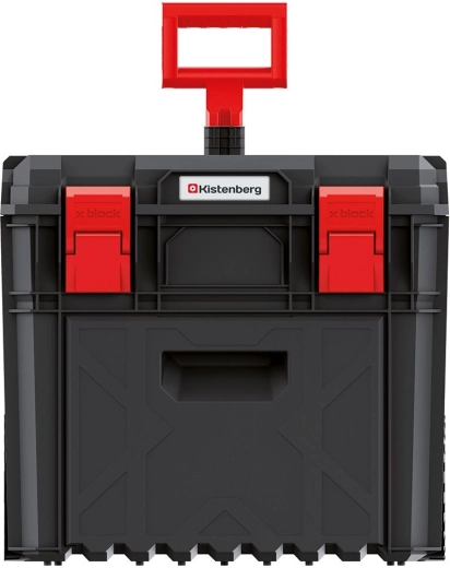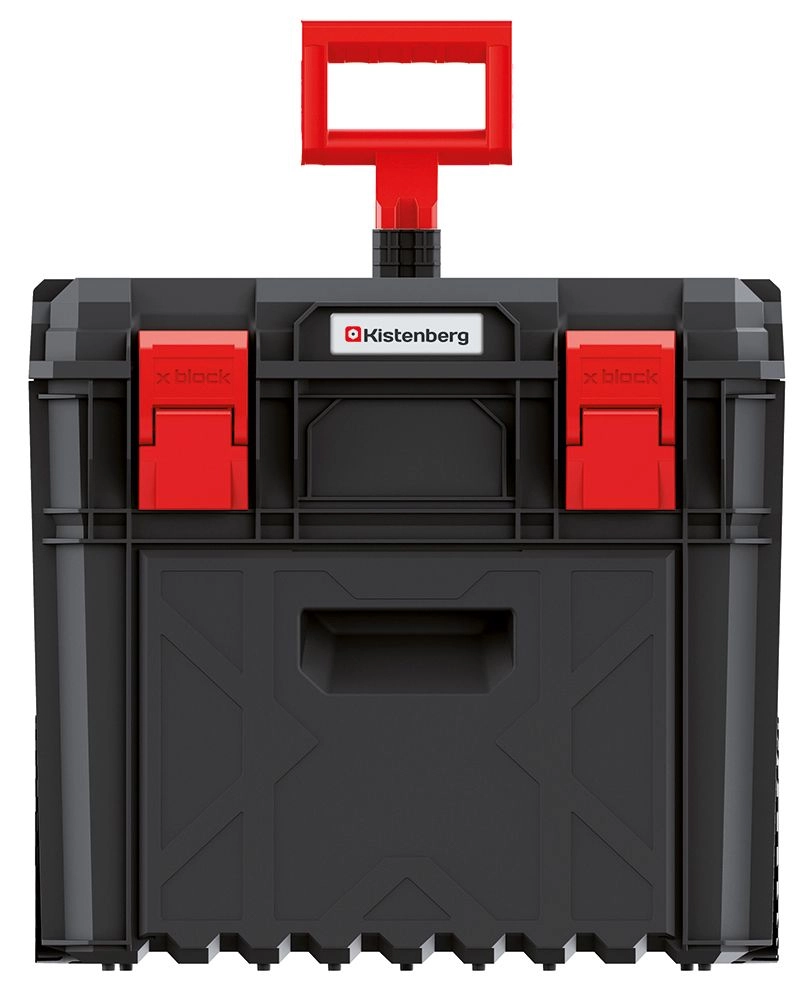 Professzionális, gurulós X-BLOCK PRO szerszámos koffer masszív felépítéssel, teleszkópos fogantyúval és nagy kerekekkel a könnyű szállításhoz. Moduláris csatlakoztathatóságot kínál más dobozokkal, por- és vízálló tömítést, valamint akár 50 kg teherbírást a nehéz szerszámok biztonságos tárolásához.